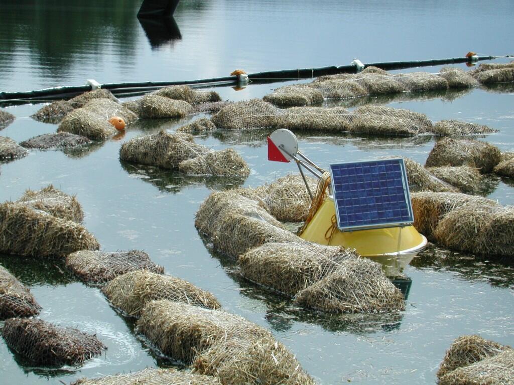 Enclosures, Plastiksäcke mit Stroh und Carbokalk, dienen als Nährstoffe für eisen- und sulfatreduzierende Bakterien.