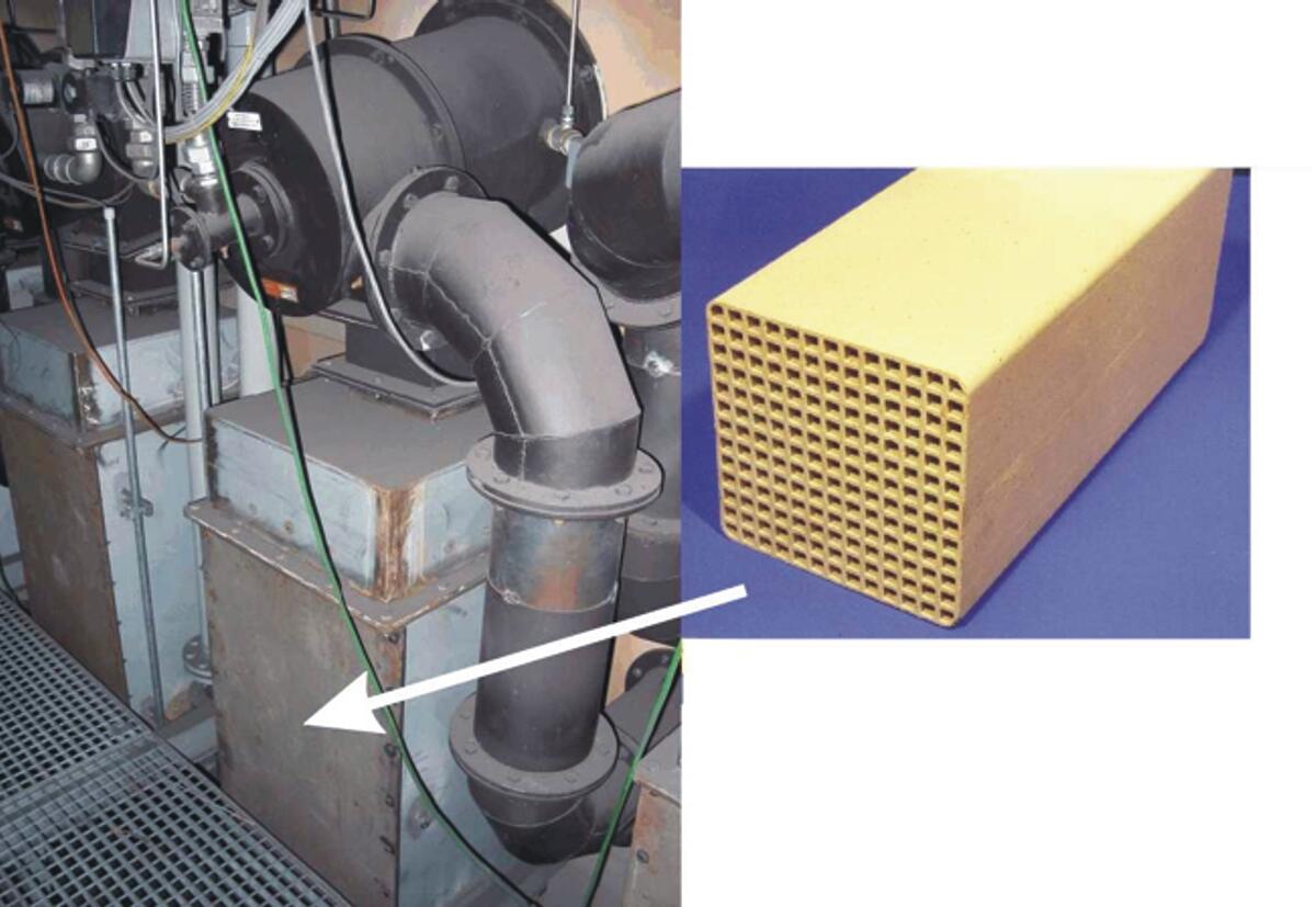 Die wabenförmigen Wärmetauscher bestehen aus Keramik.