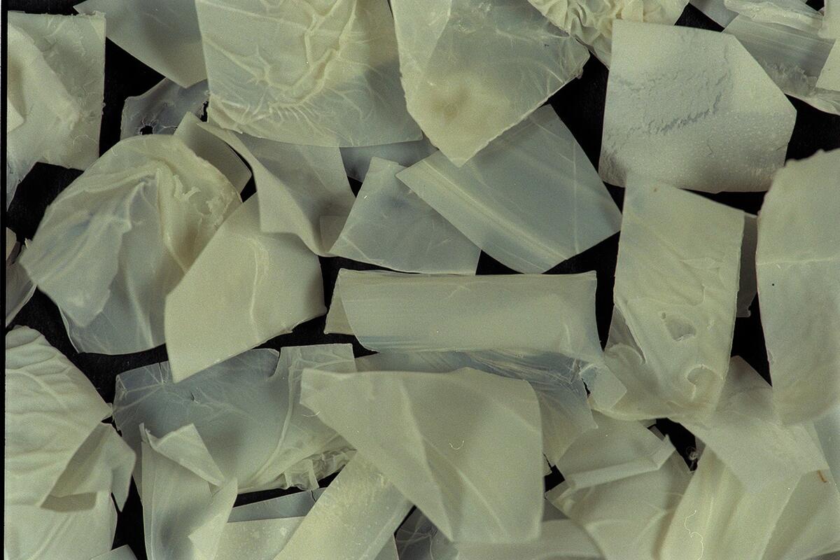 Der zweite Schritt in der Herstellungs-Kette: Die aus den Zellen isolierten Biopolymere liegen in watteartiger Form vor.