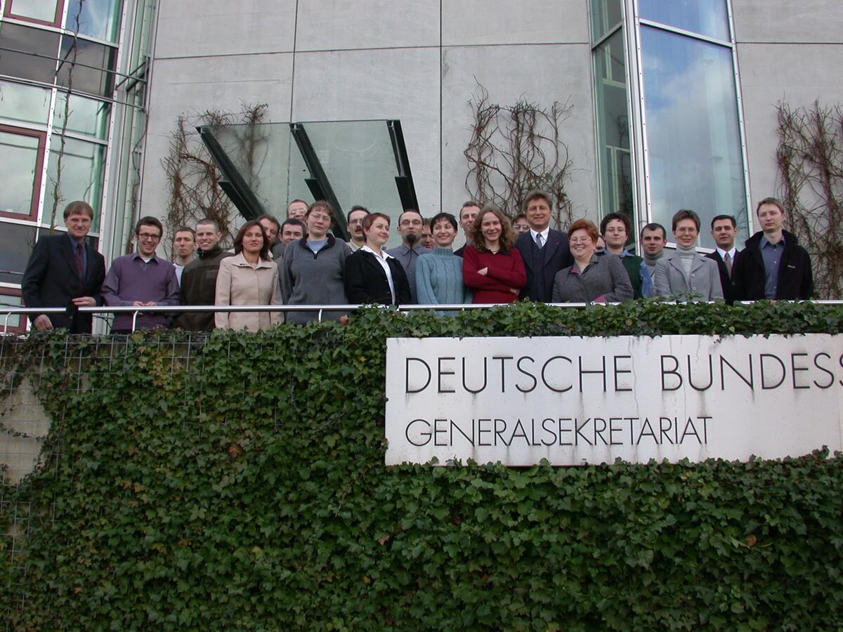Zu Gast in der DBU: 19 Stipendiaten aus osteuropäischen Ländern. Begrüßung durch Dr. Werner Wahmhoff, Abteilungsleiter Umweltforschung (li.), und DBU-Generalsekretär Fritz Brickwedde (7. v. re.).