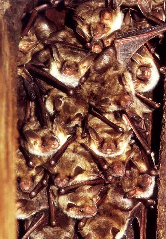 Großes Getümmel auf engem Raum: Wochenstuben des Großen Mausohrs können mehrere hundert Tiere umfassen.
