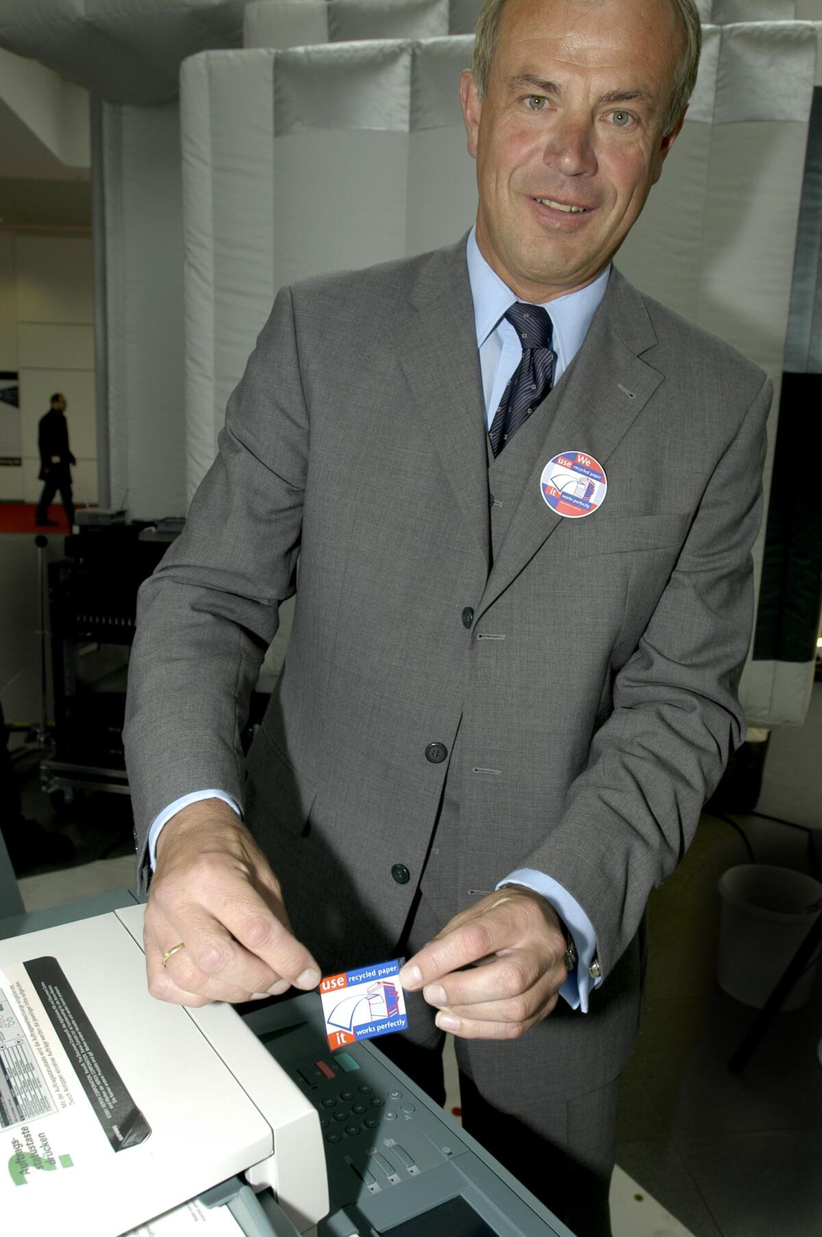 "Use recycled paper": Mit einem neuen Logo auf Kopierern rufen Hersteller der Geräte zum Einsatz von Recycling-papier auf. Sie reagieren damit auf den steigenden Papierverbrauch, der gerade durch die Informationstechnologie verursacht wird. Gleichzeitig widerlegen sie damit hartnäckige Vorurteile gegen die Eignung von Recyclingpapier für Hightech-Bürogeräte. Bei der Präsentation des Projekts der Wirtschaftsinitiative Pro Recyclingpapier auf der IT-Messe