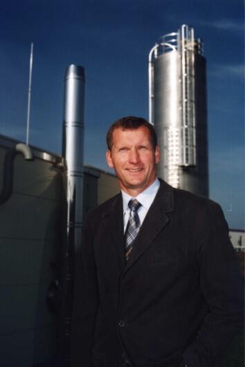 Umweltpreisträger Dr. Peter Lüth vor dem Glukosesilo der neuen Prophyta-Produktionsanlage in Wismar.