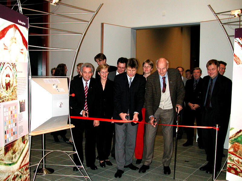 Offizielle Eröffnung der Ausstellung "Faszination Biotechnologie" durch den stellvertretenden Kuratoriumsvorsitzenden Prof. Dr. Wolfgang Engelhardt (rechts), DBU-Generalsekretär Dr.-Ing. E. h. Fritz Brickwedde und Prof. Dr. Garabed Antranikian (links)