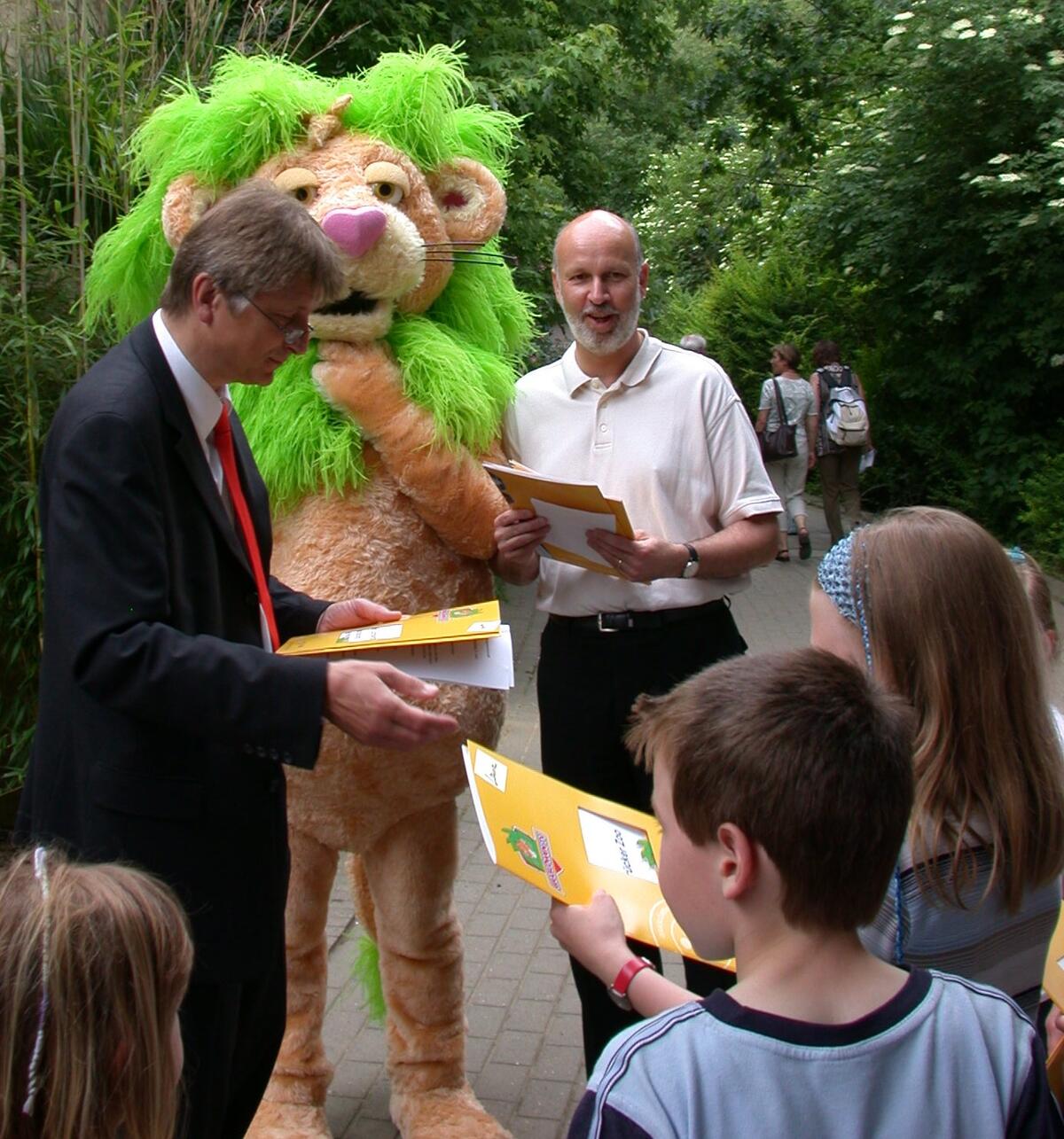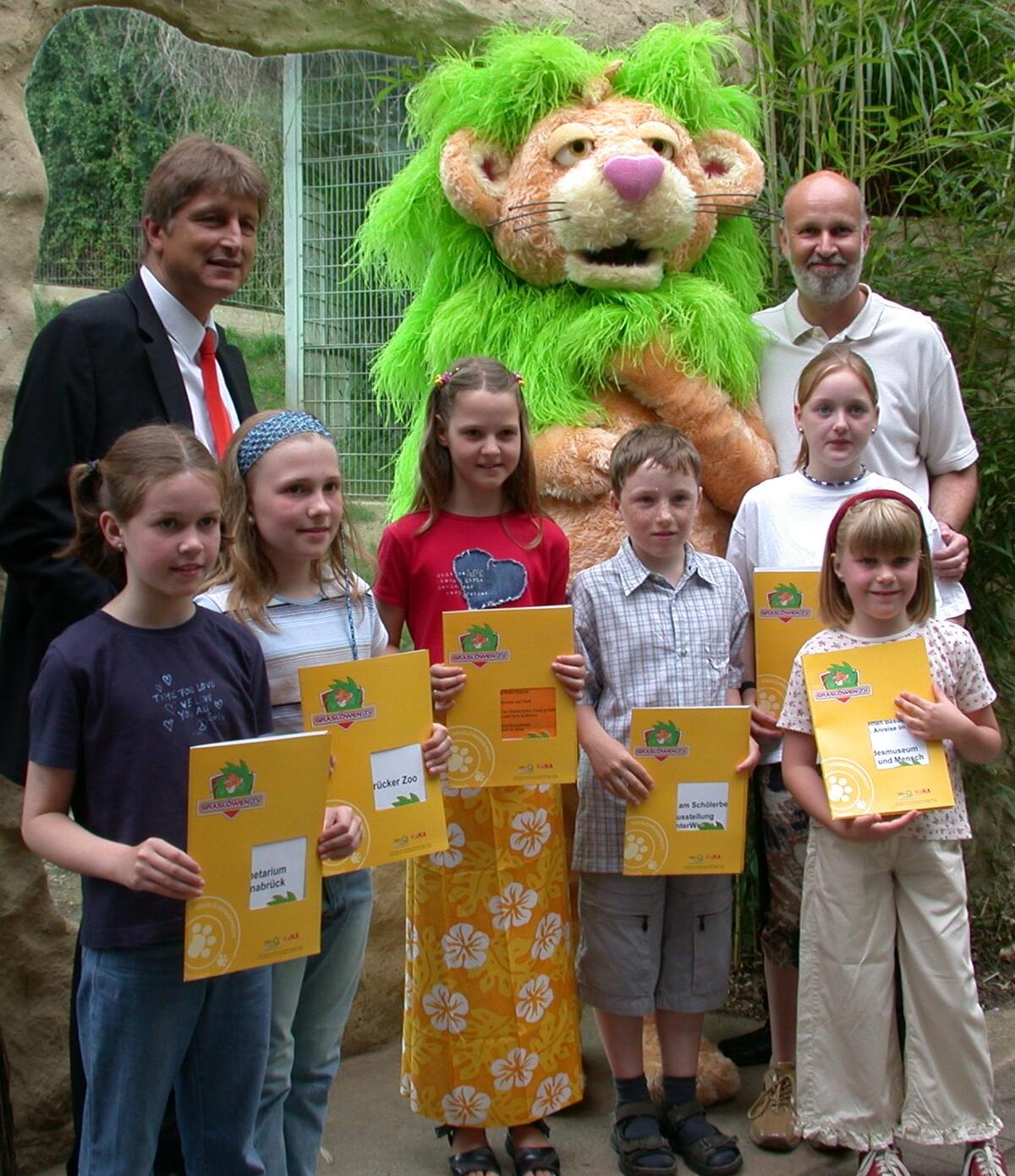Osnabrück. Löwen liegen im Schatten einer Palme und genießen die savannenähnlichen Temperaturen im Zoo Osnabrück. Plötzlich schrecken sie hoch. Ein fremder Artgenosse mit einer grünen Mähne betritt das Areal und stiehlt ihnen die Schau. Im Schlepptau Kinder, Kameras und neugierige Blicke anderer Zoobesucher. Hier geht es heute um die Umwelt. Konkret um umweltfreundliche Mobilität von Kindern und ihren Eltern. Anlässlich des internationalen Tages der Umwelt, dem 5. Juni, gewinnen sechs von über 2.000 Teilnehmern an der Gemeinschaftsaktion der Initiative Graslöwen TV und der Verkehrsgemeinschaft Osnabrück (VOS), "Auf die Tatzen fertig los", freie Eintritte in Erlebnisausstellungen und in den Zoo. "Wir möchten Kinder und ihre Eltern für den öffentlichen Personennahverkehr begeistern und ihnen umweltfreundliche Mobilität frühzeitig ans Herz legen", erklärt Dr.-Ing. E. h. Fritz Brickwedde, Generalsekretär der DBU.