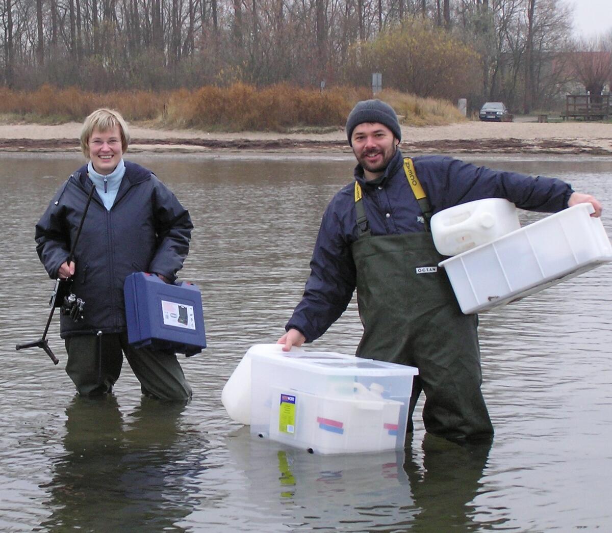 Stipendienschwerpunkt "Die südliche Ostsee und ihre Küsten im Wandel" ins Leben gerufen. Seither haben sich 15 Jungforscher der Universitäten Greifswald, Rostock und Kiel mit sozioökonomischen, geowissenschaflichen und biologischen Fragen befasst. Am Schluss werden so 14 Doktorarbeiten und eine Habilitationsschrift entstanden sein. "Das Besondere des Projekts ist die enge Zusammenarbeit über Fachgrenzen hinweg", sagt DBU-Fachreferentin Dr. Hedda Schlegel-Starmann. Die Stipendiaten trafen sich nicht nur regelmäßig zum Gedankenaustausch, sondern nahmen auch gemeinsam Proben.