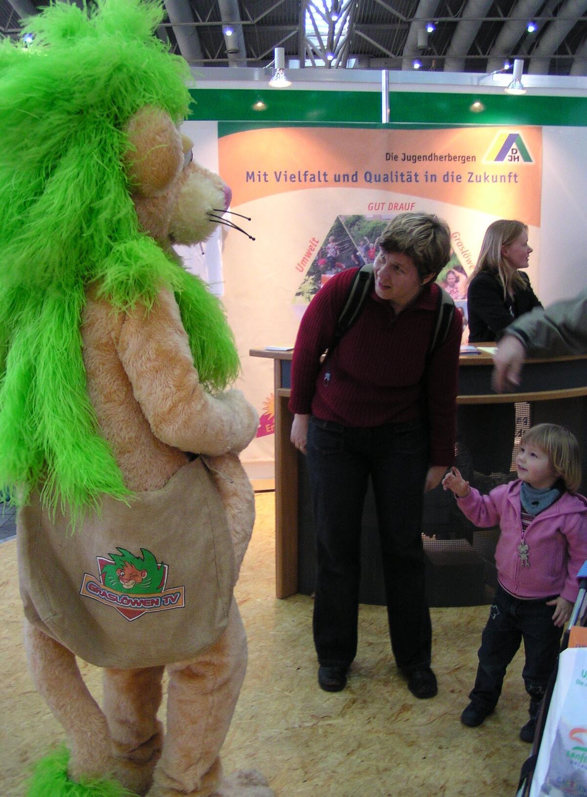 Der Graslöwe - hier auf der Fachtagung "Nachhaltige Klassenfahrten" im Rahmen des Reisepavillons Anfang Februar in Hannover - ist bei der Deutschen Bundesstiftung Umwelt (DBU) zur erfolgreichen Dachmarke für Kinder geworden.