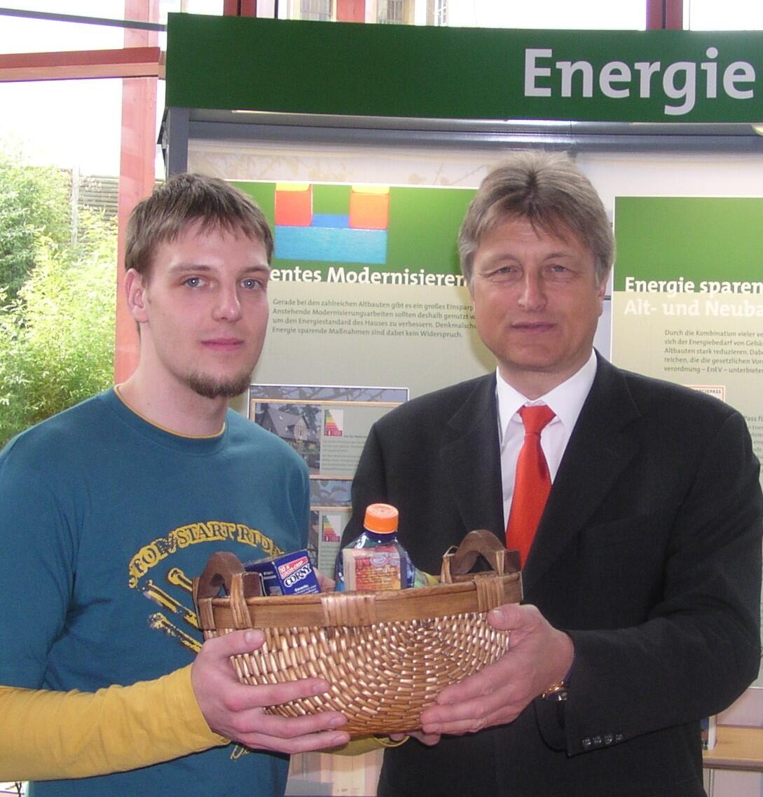 Brickwedde überreichte dem überraschten Gast heute Mittag einen Präsentkorb mit allerlei "Energie"-Produkten.