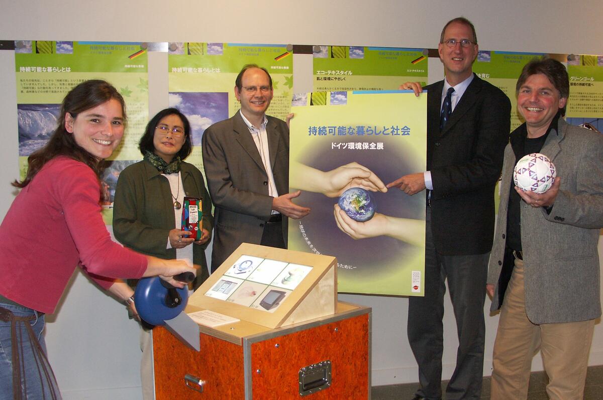 Ausstellung energie@home im DBU-Zentrum für Umweltkommunikation (ZUK) sind. Die Energiekurbel zum Beispiel zeigt an, wie viel Muskelenergie nötig ist, um einen Videorecorder oder Fernseher mit Strom zu versorgen. Auf allen vier Hauptinseln Japans wie auch im Rahmen der EXPO 2005 in Aichi wird die Ausstellung gezeigt werden, unter anderem in Tokyo, Osaka, Sapporo und Fukuoka. Bereits jetzt sei die Nachfrage in Japan dank der Unterstützung durch die Japanisch-Deutschen Gesellschaften, die Deutsche Botschaft und das Goethe-Institut in Tokyo enorm, betont DBU-Generalsekretär Dr.-Ing. E. h. Fritz Brickwedde.