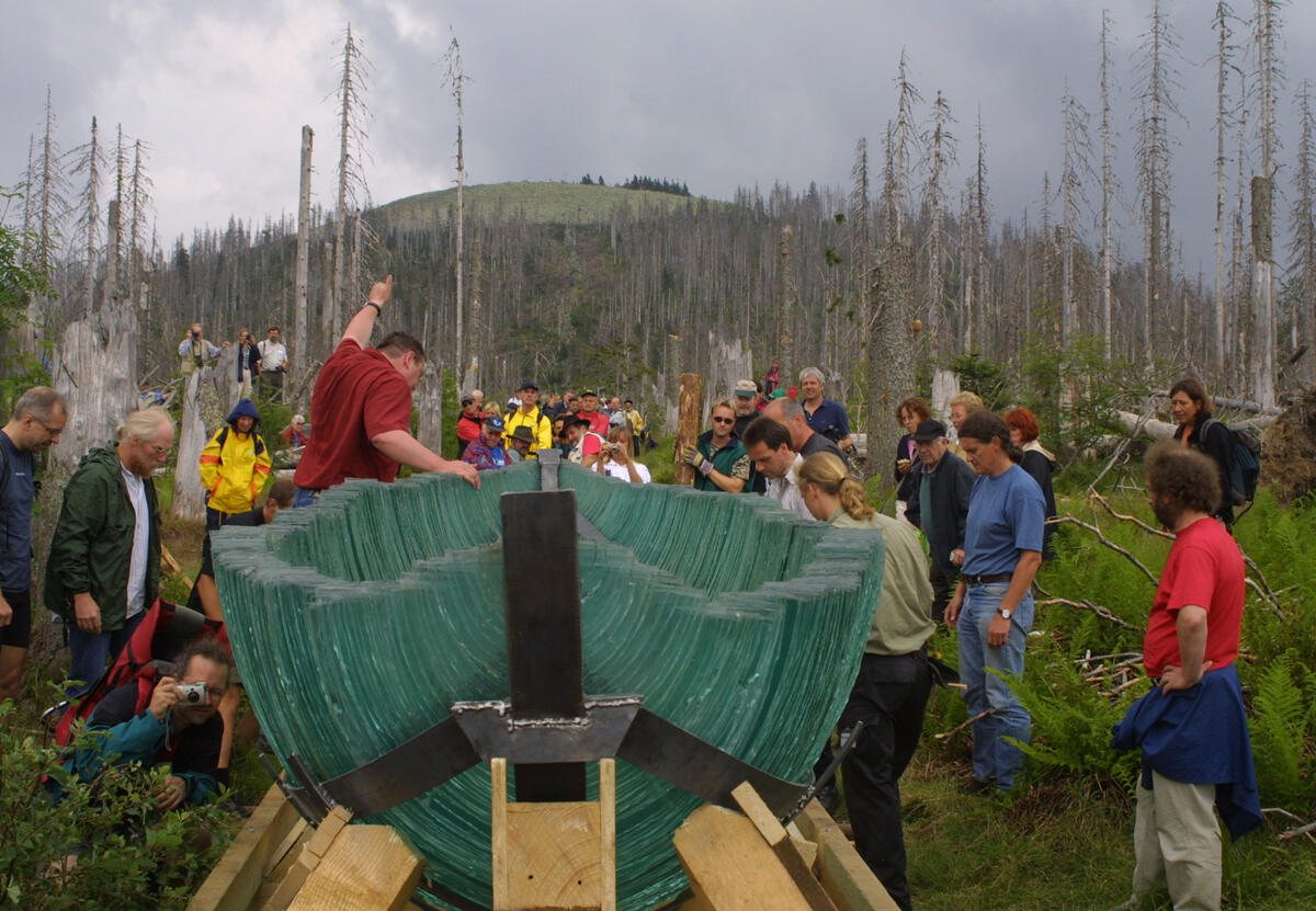 Zusammenleben von Bayern und Tschechen fördern Bei dem Kunst-Projekt "GlasArche" handelt es sich um ein grün schimmerndes, gläsernes fast fünf Meter langes und drei Tonnen schweres Schiff auf einer überdimensionalen Holzhand, das sich seit 2003 auf einer einzigartigen grenzüberschreitenden Reise quer durch die Nationalparkregionen des Bayerischen Waldes und des Böhmerwaldes befindet. In der Kategorie "Umweltkommunikation" erhält der Verein WaldZeit für dieses Projekt den muna-Preis. Die Jury: "Die Arche steht für die Einmaligkeit und Zerbrechlichkeit von Waldökosystemen und soll das Zusammenleben von Bayern und Tschechen fördern. Eine Fülle von Aktionen und Veranstaltungen rund um die GlasArche sorgen immer wieder für ein breites Publikum."