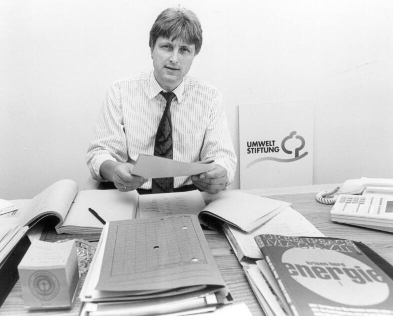 Aus provisorischen Anfängen zur größten Umweltstiftung der Welt: DBU-Generalsekretär Fritz Brickwedde wenige Wochen nach seinem Amtsantritt im Sommer 1991 in einem noch kargen Büro.