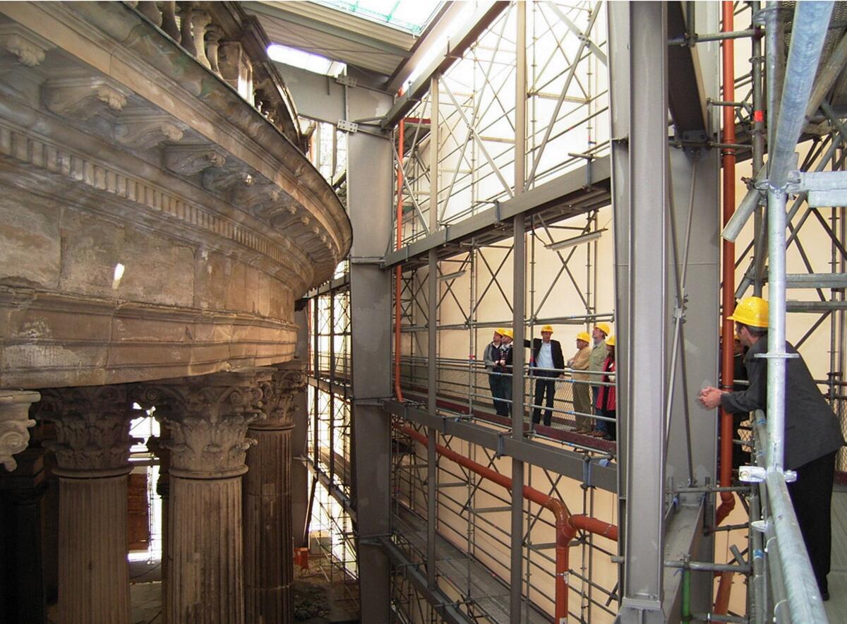 Dem Sandstein tut der Gips nicht gut - Gewölbekappen an Säulen eingestürzt