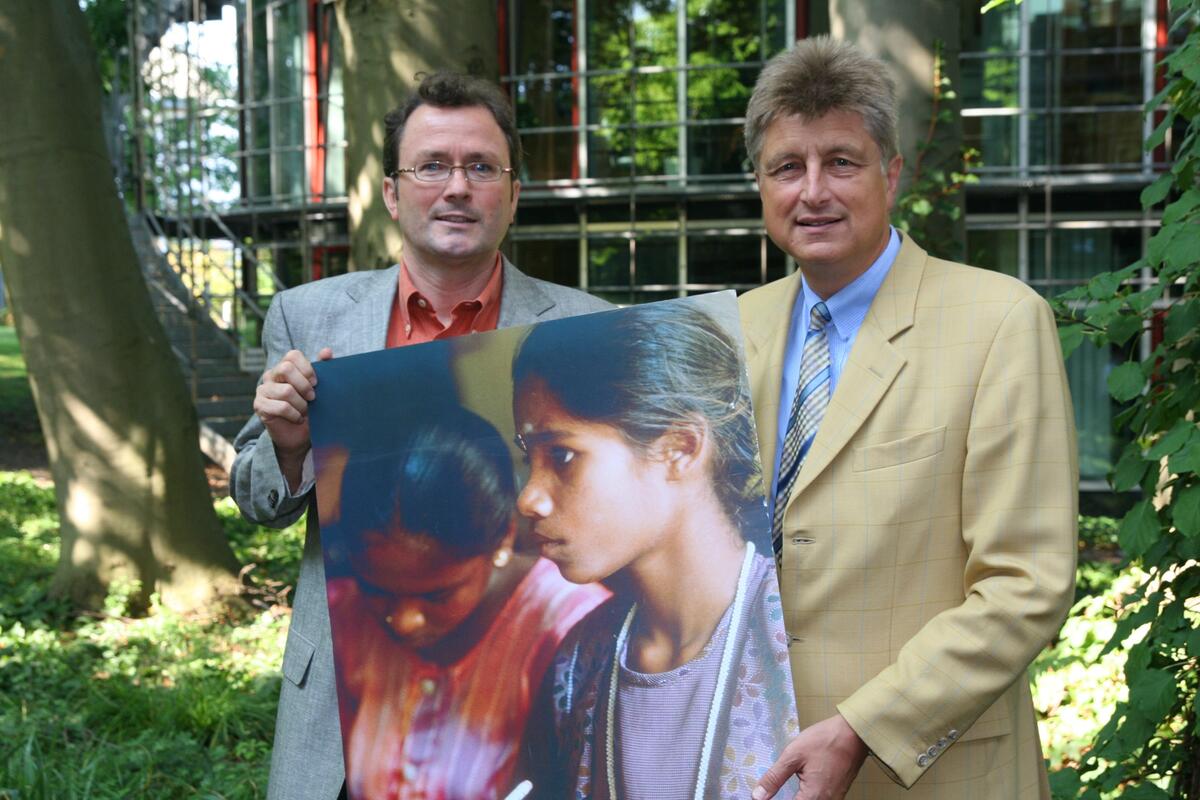 Brickwedde bei der Übergabe des Bewilligungsschreibens an den Geschäftsführenden Vorstand von terre des hommes, Peter