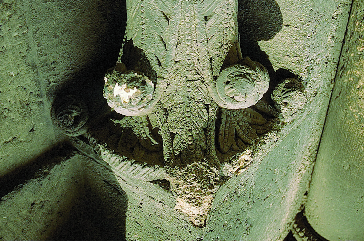Ein sehr auffälliger Schaden waren die schwarzen Krusten auf dem Stein. Die Restauratoren konnten die Gipsschicht auf dem Stein nicht einfach abtragen. Das hätte die künstlerisch gestalteten Oberflächen der Steine zerstört. Ziel der Restauratoren war es daher, nicht nur die Originalbausubstanz zu erhalten sondern auch die entstandene Kruste.