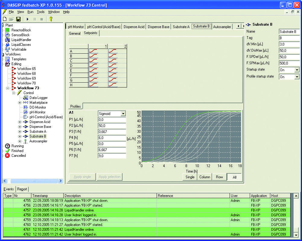 Mithilfe der in die Einweg-Bioreaktoren integrierten, optischen Sensorelemente für pH-Wert und Sauerstoffgehalt, können diese wichtigen Prozessgrößen für jeden Ansatz individuell überwacht werden. Die Titration des pH-Wertes, Substratzuführung, Analytik, Probenahme und Probenvorbereitung werden durch einen handelsüblichen Laborroboter automatisiert. Ein neuartiges Prozessleit- system unterstützt alle Tätigkeiten von der Versuchsplanung über die Versuchsdurchführung und -kontrolle bis hin zur Datenauswertung.
