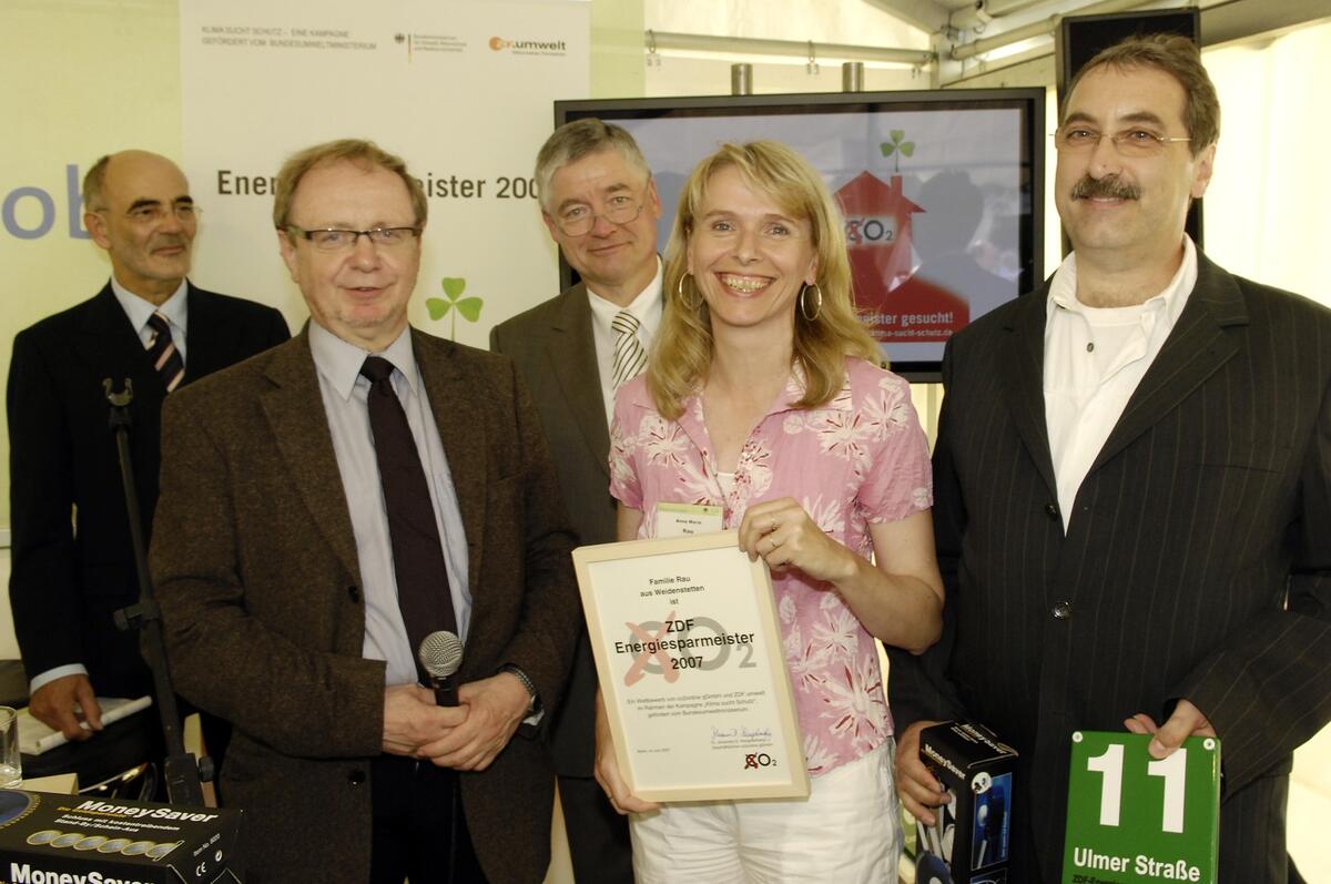 Berlin. Bei der „Woche der Umwelt" sind die „Energiesparmeister 2007" gekürt worden: zehn Familien haben die Auszeichnung gewonnen, die das Umweltministerium im Rahmen der Kampagne „Klima sucht Schutz" zusammen mit der Fernsehsendung „ZDF.umwelt" ausgelobt hatte. Ihr Verdienst: Sie nutzten natürliche Baustoffe und regenerative Energiequellen etwa für Heizungsanlagen. Haushaltsgeräte mit höchster Energieeffizienz-Klasse stehen in den „Energiesparmeister-Häusern". Einige Preisträger tanken Pflanzenöl oder fahren lange Strecken mit dem Fahrrad statt mit dem Auto. Der Preis ist ein grünes Türschild mit der Hausnummer der Gewinner und 2.500 Euro, die von Michael Müller, parlamentarischer Staatssekretär im Bundesumweltministerium, überreicht wurden. Die einzelnen Gewinner sind hier aufgeführt.