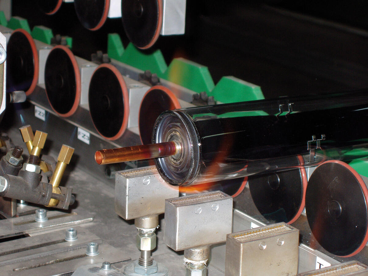 NARVA hat den Schritt vom Lampenproduzent zur Solar-Technik erfolgreich vollzogen: Das Rohr wird im eigenen Glaswerk in Brand-Erbisdorf gezogen, die Vorfertigung stellt die kupfernen Absorbereinheiten her. Pro Schicht und Jahr können hier rund eine Million Vakuumröhren hergestellt werden. NARVA erhielt für die Entwicklung der Vakuumröhrenkollektoren den Innovationspreis anlässlich des 18. Symposiums Thermische Solarenergie.