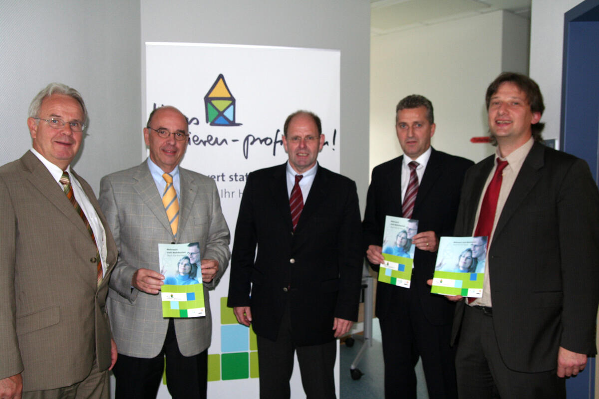 Meppen. Die vier Geschäftsführer der Kreishandwerkerschaften aus dem Emsland und der Grafschaft Bentheim sind überzeugt: Die neue Kampagne „Haus sanieren - profitieren“ der Deutschen Bundesstiftung Umwelt (DBU) wird in der Region Früchte tragen. Horst Hagemann (Lingen), Hermann Schmitz (Papenburg), Claus Stolte (Meppen) und Wolfgang Wolf (Grafschaft Bentheim) trafen sich heute im Haus des Handwerks in Meppen, um den offiziellen Startschuss für die Kampagne in der Region zu geben. Im Mittelpunkt des neuen, mit fünf Millionen Euro geförderten DBU-Programms steht ein erster kostenloser, Gewerke übergreifender Energie-Check für Hausbesitzer: 200 bislang geschulte Handwerker der Region werden ab jetzt unverbindlich Fenster, Dämmung und Heizung in den Häusern überprüfen und weitere Schritte der Sanierung erläutern. Ziel ist es, Hausbesitzer zu motivieren, ihre Immobilien fit für die Zukunft zu machen. Schließlich sparen sanierte Häuser Energie und schonen so das Klima.