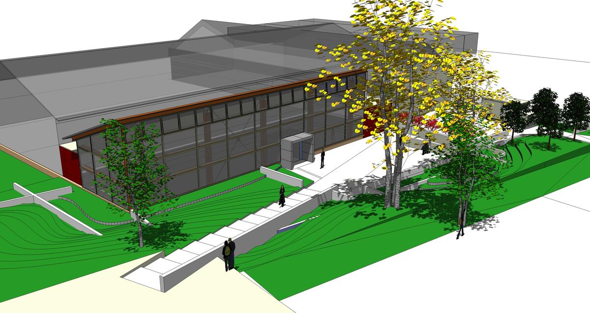 So wird das Wismarer Theater auf dem Campusgelände aussehen, wenn es bis 2010 im Passivhausstandard umgebaut ist. Während den Bauphasen wird es weiter genutzt.