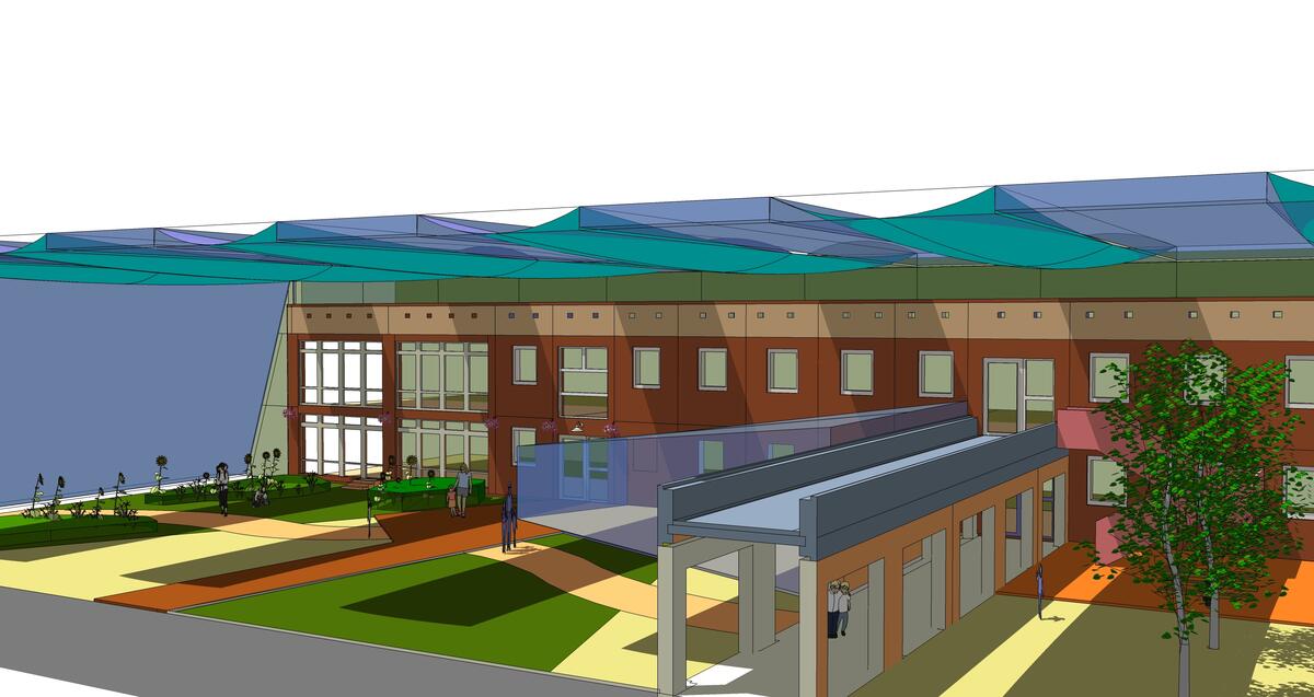 Die "Klimazwischenzone" in der Kita "Sonnenschein" in Wismar verbindet demnächst zwei Gebäudeteile und wird vom Tageslicht durchflutet.