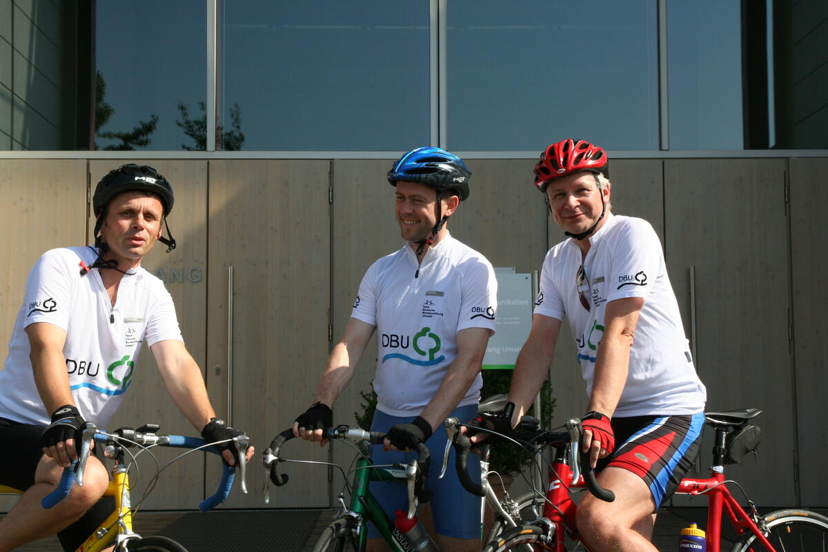 Osnabrück/Hamburg. Drei Mitarbeiter der Deutschen Bundesstiftung Umwelt (DBU) starten am Sonntag in der Kategorie „Jedermann“ bei den zwölften Vattenfall Cyclassics in Hamburg. Trotz der jüngsten Dopingskandale im Radsport lassen sich Ulf Jacob, Rainer Königs und Dr. Roman Moyzes ihren Sport nicht vermiesen. „Rad fahren macht vor allem Spaß und hat sehr viel mit Umwelt zu tun. Es ist nicht nur eine der umweltfreundlichsten Fortbewegungsmöglichkeiten. Man kann die Natur durch Rad fahren immer wieder neu und intensiv erleben“, so Moyzes. Rund 22.000 „Jedermänner“ werden am Sonntag auf drei Rundkursen über verschiedene Distanzen in die Pedale treten. Das „Team DBU“ hat sich vorgenommen, die Sprintstrecke von 55 Kilometern zu meistern.