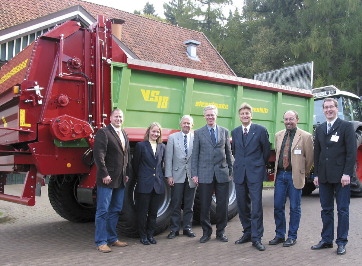 In order to attune the fertilization optimally to the nutrient demand of the plants and the environment it is necessary to know the soil factors exactly. Charts and maps delivering data on the soil nutrient and harvest volumes can serve to define the fertilization parameters. The computer on board of the innovative spreader records these reference values. The weight of the charge and the speed are determined permanently during operation. From the weight and the covered distance the computer calculates the fertilizer quantity proposed online and compares it with the reference values. Based on this, the fertilizer flow is regulated automatically during operation. The satellite-controlled fertilizer spreader closes a gap and integrates the organic fertilization into the »Precision Farming«-System.