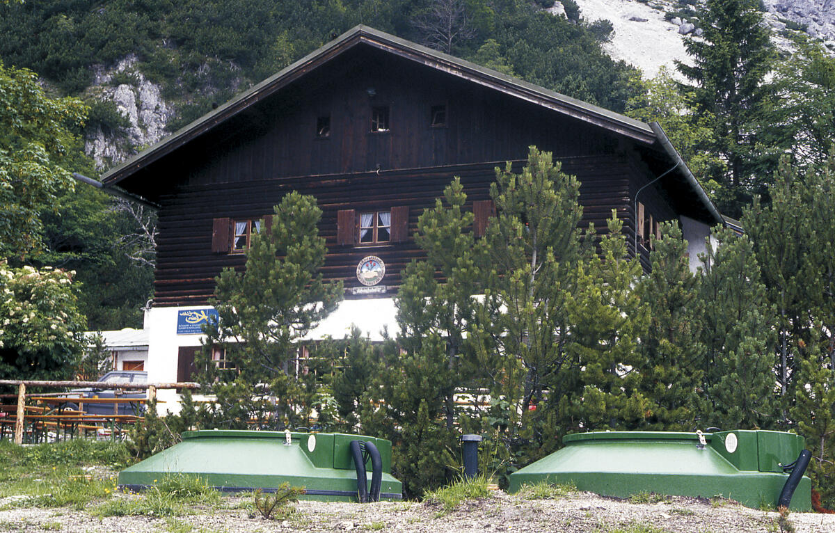The Mindelheim hut of the German alpine association plays a pioneer role in environmental compatibility. Here in the Allgäu Alps at a height of 2038 m the sewage disposal and the supply with water and electricity is at its most modern stand. The snowfield - once an all-summer water supply - has frequently melted completely by mid-season. Now, two new sources provide the hut with drinking-water. Moreover rainwater is collected from the roof surfaces and used to flush toilets. Photovoltaic cells generate electricity. Even the energy intensive transport cable railway can be powered with it - in bottle-neck periods supported by a rapeseed oil driven block-type thermal power station. A subterranean full-biological purification plant provides that the biological proportion of sewage can be led back into the cycle.