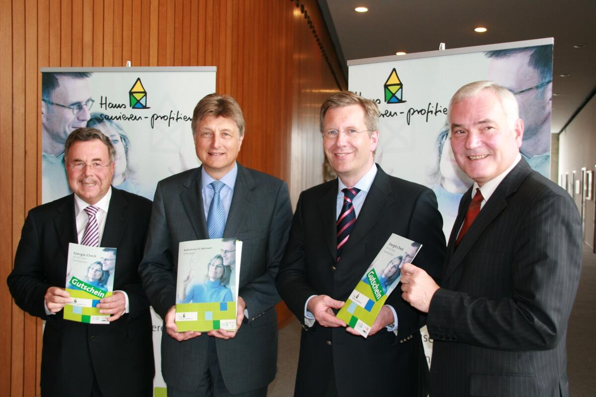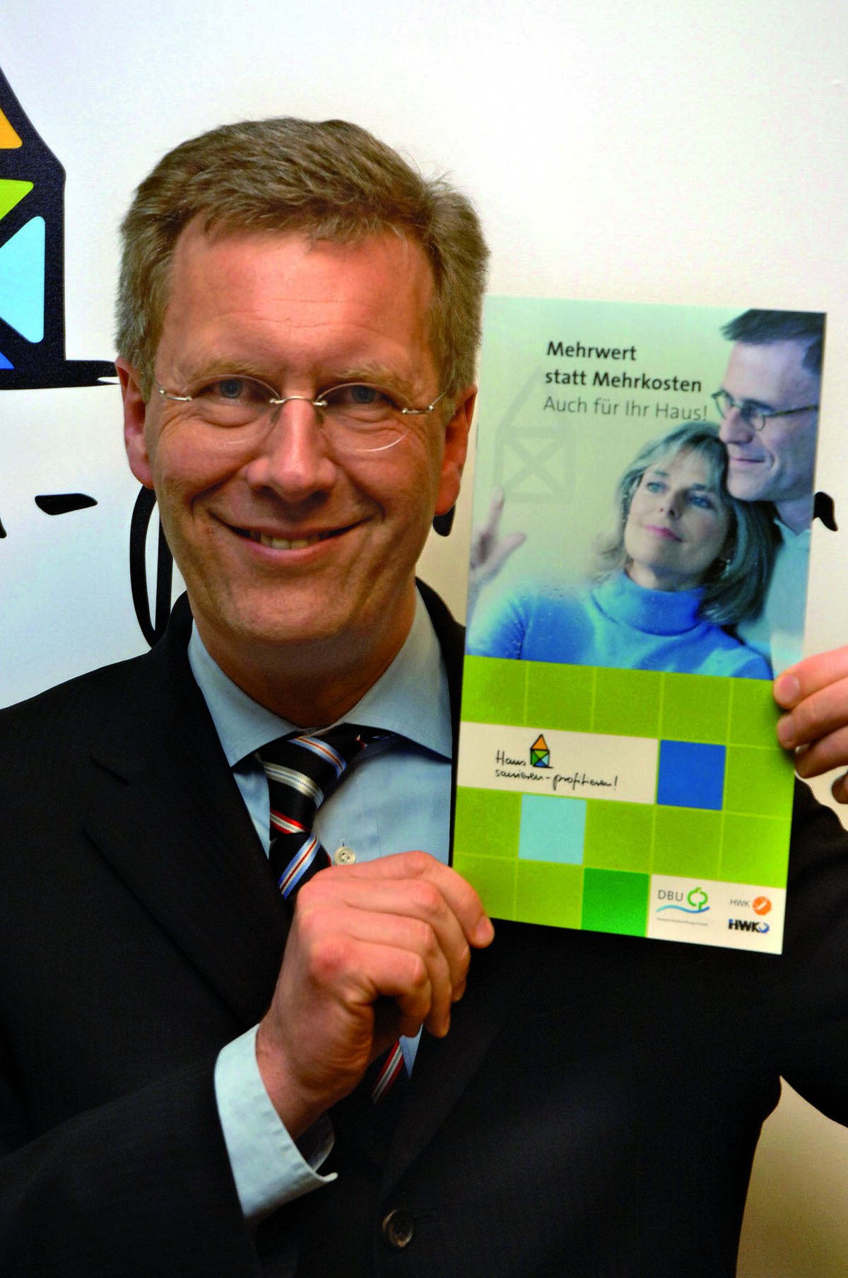 Wulff zeigte sich in Hannover überzeugt: Das Beratungsprogramm der Deutschen Bundesstiftung Umwelt (DBU) in Zusammenarbeit mit dem Handwerk werde in Niedersachsen Früchte tragen. „Ich halte diese Kampagne für überaus sinnvoll, weil sie sicherlich dazu beitragen wird, die Zahl der Haussanierungen deutlich zu erhöhen“, so Niedersachsens Schirmherr. „Mit der energetischen Gebäudesanierung gelingt die Synthese von Ökonomie und Ökologie – Geldbeutel und Umwelt profitieren.“ Der Energie-Check als Teil von „Haus sanieren – profitieren!“ stelle einen Einstieg ins Thema dar. Ziel der Kampagne sei es, Hausbesitzer zu motivieren, ihre Immobilien fit für die Zukunft zu machen, betonte Brickwedde. „Danach sollte eine ausführliche Energieberatung folgen, bei der ein Maßnahmenpaket geschnürt und Kosten abgeschätzt werden“, weiß Brickwedde. Schließlich würden sanierte Häuser Energie sparen und die Umwelt schonen.