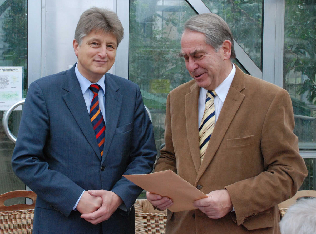 Osnabrück. „Die Natur erobert sich ihr Revier zurück“, heißt es landläufig. Den besten Beweis dafür bietet der Kalksteinbruch am Osnabrücker Westerberg. Er präsentiert sich heute, 20 Jahre nach dem Stillstand der schweren Maschinen, als ausgeglichenes Ökosystem. Viele heimische Pflanzen- und Tierarten haben sich in direkter Nachbarschaft zum Botanischen Garten angesiedelt. Der Freundeskreis Botanischer Garten der Universität Osnabrück will den Steinbruch nun angliedern. Auf einem Pfad sollen sich die Besucher des Gartens auf direktem Weg ein Bild vom Lebensraum Steinbruch machen. Vor allem die kleinen Besucher sollen viel über die Artenvielfalt auf dem Gelände lernen können. Heute übergab der Generalsekretär der Deutschen Bundesstiftung Umwelt (DBU), Dr.-Ing. E. h. Fritz Brickwedde, den Förderbescheid über 125.000 Euro an den Freundeskreis Vorsitzenden Dierk Meyer-Pries.