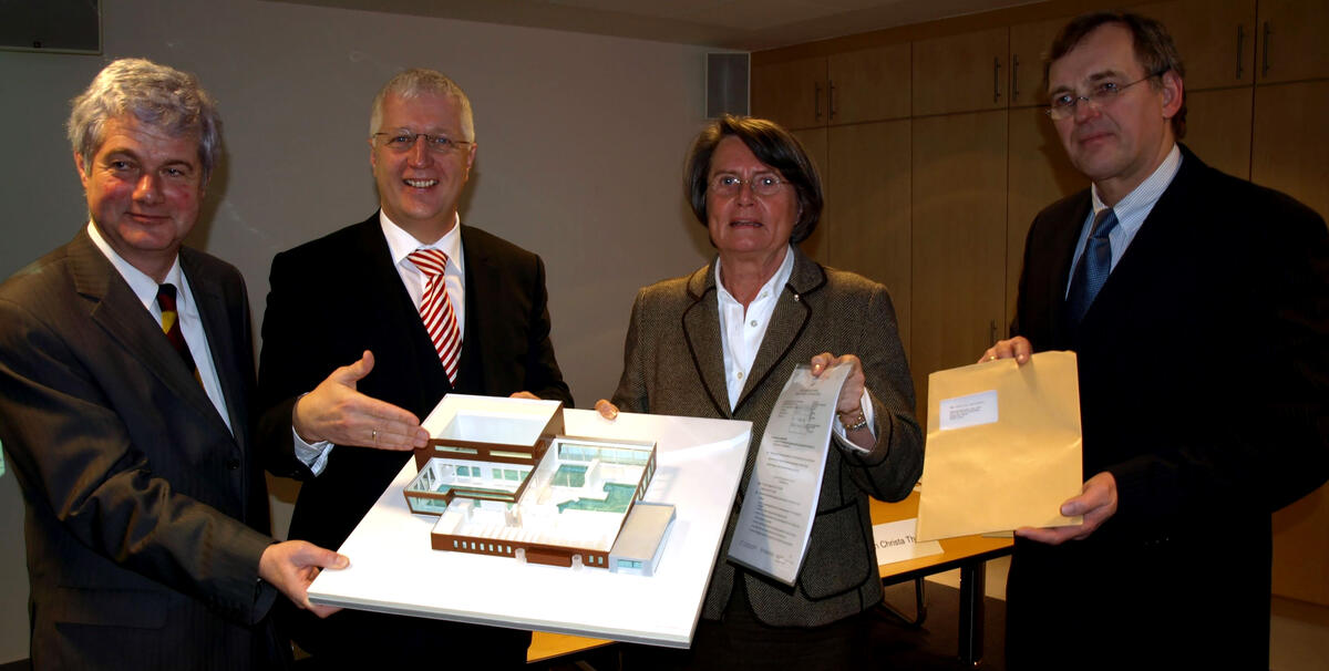 Lünen. Eine Alternative bei nasskaltem Wetter ist ein Besuch im feuchtwarmen Schwimmbad. Viele Erholungsbedürftige und Aktive nutzen Hallenbäder, um ihrer Gesundheit etwas Gutes zu tun. Die „Gesundheit“ der Umwelt wird bisher beim Betrieb von Hallenbädern vielfach vernachlässigt: Viel Energie wird gebraucht, damit es drinnen warm und das Wasser sauber bleibt. In Lünen beginnt jetzt die Planung für den Bau einer Schwimmhalle nach Passivhausstandard. Dr. Wulf Grimm, Abteilungsleiter Umwelttechnik der Deutschen Bundesstiftung Umwelt (DBU), übergab heute im Beisein von Nordrhein-Westfalens Wirtschaftsministerin Christa Thoben die Bewilligung von 125.000 Euro zur Bauplanung an Dr. Achim Grunenberg, Geschäftsführer der Bädergesellschaft. Die neue Halle soll zukünftig 50 Prozent weniger Energie als ein normaler Neubau verbrauchen. „Das Passivhaus-Bad soll eine Initialzündung für weitere Bäder sein“, so Grimm.
