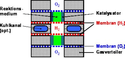 Diese Probleme können mit einem innovativen Konzept zur Reaktionsführung der Direktsynthese überwunden werden, das im Rahmen des Projektes realisiert werden soll: Durch die Mikrostrukturierung des Reaktionskanals (gute Kontrolle der Temperatur, der Verweilzeit und Unterdrückung der Totaloxidation) und die räumliche Trennung von Wasserstoff und Sauerstoff soll die Sicherheit des Verfahrens verbessert werden.