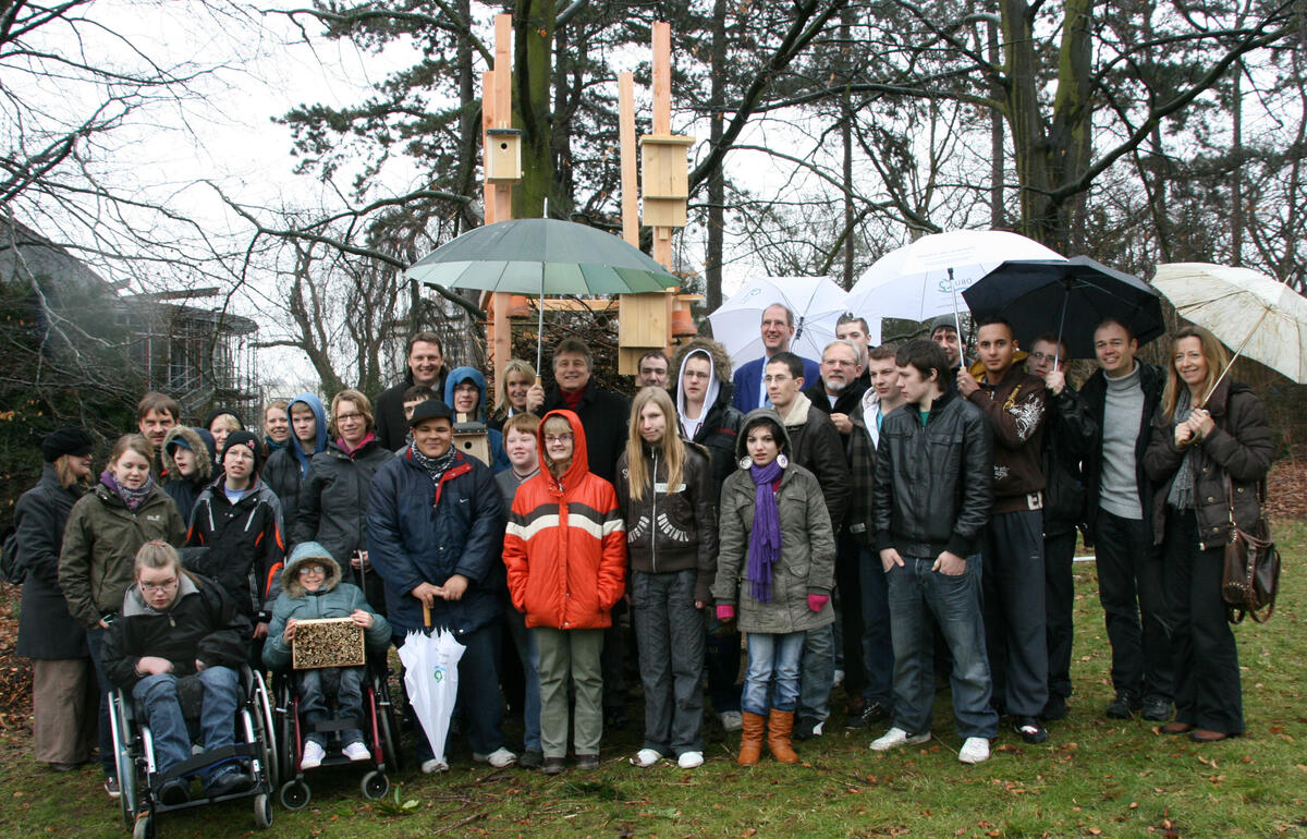 Anlässlich der Preisverleihung fand eine Sonderaktion zur Artenvielfalt statt, an der sich 24 Jugendliche beteiligten: Neun Schüler der Ernst-Klee-Schule aus Mettingen, einer Förderschule für körperliche und motorische Entwicklung, und 15 Jugendliche des Bildungswerkes der Niedersächsischen Wirtschaft (BNW), Osnabrück, erbauten aus Holz, Heu, Laub, Steinen, Reisig und weiteren Materialien gemeinsam einen Lebens- und Nistplatz für verschiedene Kleintiere und Insekten. „Der Lebensturm im Park der DBU ist ein schönes Beispiel dafür, wie sich soziale Projekte mit Naturschutzengagement verbinden lassen“, erläuterte Brickwedde die Aktion.
