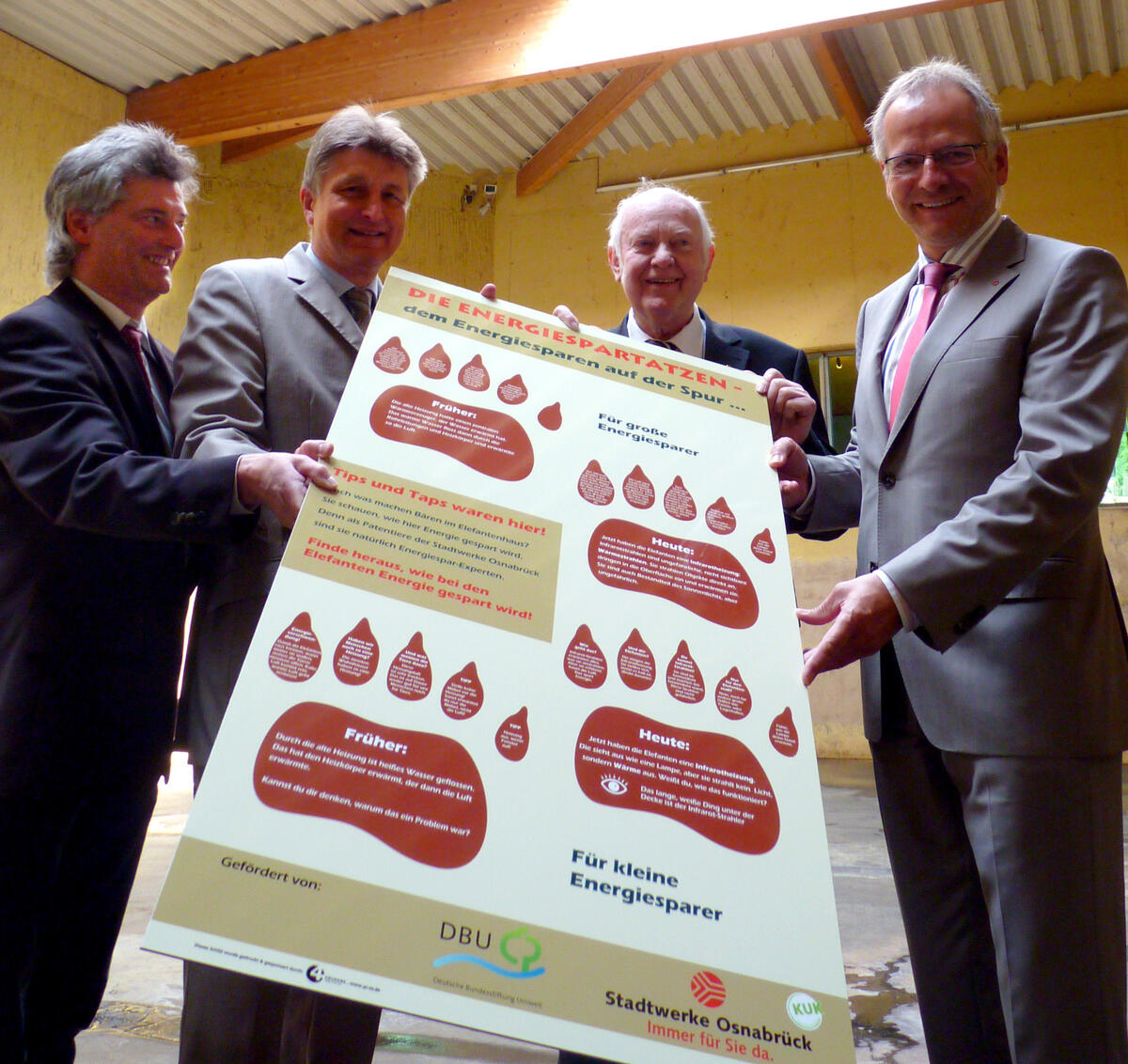 Osnabrück. Elefantenkuh Sabi dreht die Heizung ab. Und auch Affe, Nashorn und Co. stehen dem Dickhäuter in Sachen Klimaschutz in nichts nach. Der Zoo Osnabrück hat sein Energiesparprogramm erfolgreich in die Praxis umgesetzt. Zwei Jahre hat er in Zusammenarbeit mit der Deutschen Bundesstiftung Umwelt (DBU) und den Stadtwerken Osnabrück nach Möglichkeiten gesucht, den Energieverbrauch zu verringern. Ein Viertel weniger Strom genutzt, 68.200 Euro an Kosten gespart und 250 Tonnen weniger Kohlendioxid produziert – das ist nun die Bilanz. Bei der heutigen Präsentation der Abschlussergebnisse lobte DBU-Generalsekretär Dr.-Ing. E. h. Fritz Brickwedde das modellhafte Konzept: „Zoos leisten einen wichtigen Beitrag zu Artenschutz, Forschung und Bildung. Gleichzeitig benötigen sie viel Energie. Die Versorgung so sparsam wie möglich zu gestalten, ist hier beispielhaft verwirklicht worden. Dieses Wissen kann nun an andere Zoos weitergegeben werden.“