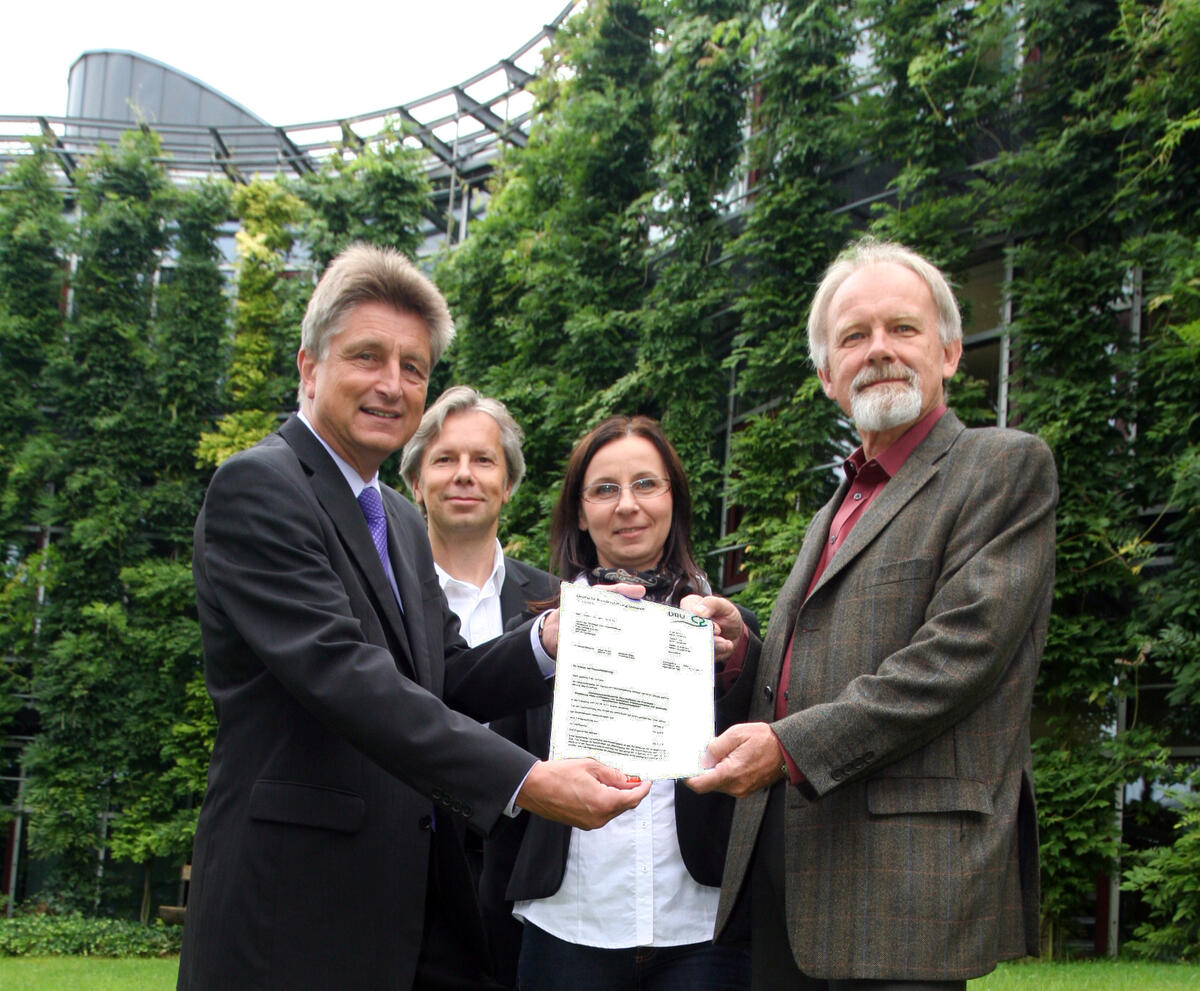 Osnabrück/Breslau. Rund 40 Prozent der in Europa genutzten Energie werden in Gebäuden verbraucht. „Zwar gibt es in der Bauökologie deutliche Fortschritte. Trotzdem herrscht dort weiterhin enormes Einsparpotenzial. Vielen Nutzern und Besuchern insbesondere öffentlicher Gebäude sind die heutigen Möglichkeiten der Energieeffizienzsteigerung und des Ressourcenschutzes am Bau nicht bekannt“, erläuterte heute Dr.-Ing. E. h. Fritz Brickwedde, Generalsekretär der Deutschen Bundesstiftung Umwelt (DBU). Er überreichte einen Förderbescheid über rund 70.000 Euro an Dr. Gerhard Becker, Vorsitzender des Osnabrücker Vereins für Ökologie und Umweltbildung. Der Verein will ein Kommunikationskonzept entwickeln, wie energiesparende Öko-Gebäude mit ihren umweltrelevanten Elementen selbst als „Ausstellungsstücke“ in Szene gesetzt werden können. Der Neubau der Technischen Universität Breslau (Polen) soll dafür Modell stehen.