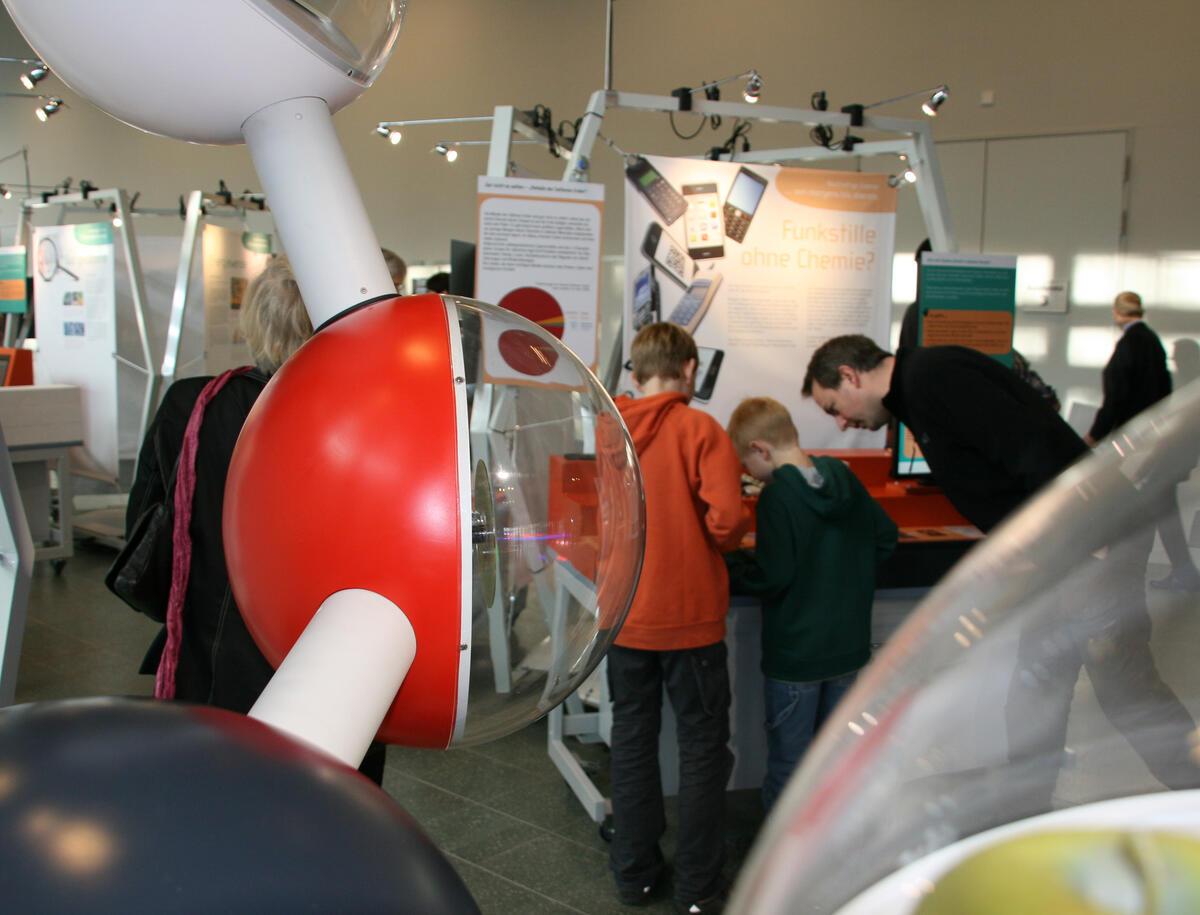 Wagemann stellte in seinem Grußwort die Alltagsnähe der Chemie heraus und wies darauf hin, wie viel Forschergeist in chemischen Verfahren stecke. „Wir wollen das Bewusstsein dafür wecken, dass Chemie und Nachhaltigkeit keine Gegensätze sind.“ Das eine sei ohne das andere nicht denkbar. Nachhaltiges Wirtschaften könne ohne Problemlösungen der Chemie nicht verwirklicht werden, betonte auch Tillmann. Innovationen der Branche führten zu neuen und besseren Produkten in den nachgelagerten Wertschöpfungsstufen. „Überzeugen Sie sich selbst in der Ausstellung, wie vielgestaltig und spannend die Themen rund um die Nachhaltige Chemie sind“, lud Dröscher die Besucher ein, sich die Exponate genauer anzusehen. Alle Beteiligten freuten sich zudem über die Auszeichnung der Schau als offizielles Dekade-Projekt 2012/2013 im Rahmen der UN-Weltdekade „Bildung für nachhaltige Entwicklung“ durch das Nationalkomitee der Vereinten Nationen (UN). Das Votum der Jury würdigt das Projekt, weil es verständlich Kindern und Erwachsenen nachhaltiges Denken und Handeln nahe bringe.