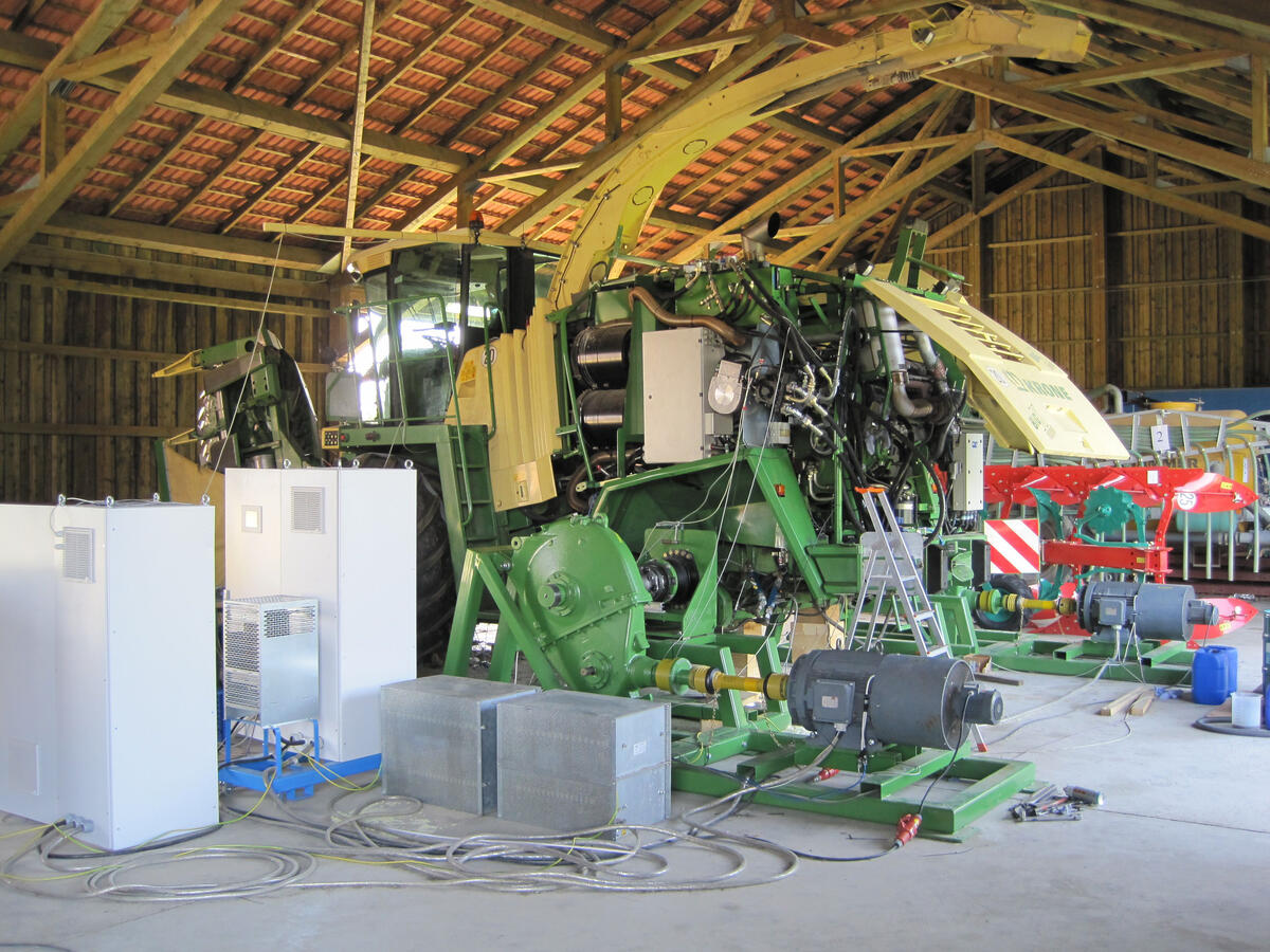Bei der Gras- und Maissilageproduktion sind selbstfahrende Feldhäcksler die Schlüsselmaschinen für die Aufnahme, das Zerkleinern und das Verladen des Erntegutes. Üblicherweise werden sowohl die Fahrantriebe dieser Maschinen als auch die Antriebe für Nebenaggregate hydrostatisch ausgeführt. Ein DBU-gefördertes Kooperationsprojekt bietet nun eine alternative Antriebslösung, die sich durch einen deutlich verbesserten Wirkungsgrad auszeichnet: Die Maschinenfabrik Bernard Krone GmbH (Spelle) und der Lehrstuhl für Agrarsystemtechnik der Technischen Universität München (Freising) entwickelten eine Landmaschine, bei der der Vorsatz- und Einzugsantrieb sowie der Fahrantrieb der Hinterachse nicht hydraulisch, sondern dieselelektrisch betrieben werden. Durch eine bessere Leistungsübertragung und eine verbesserte Regel- und Steuerbarkeit steigt der Wirkungsgrad der elektrischen gegenüber den hydraulischen Komponenten antriebsstrangbezogen um bis zu 25 Prozent.