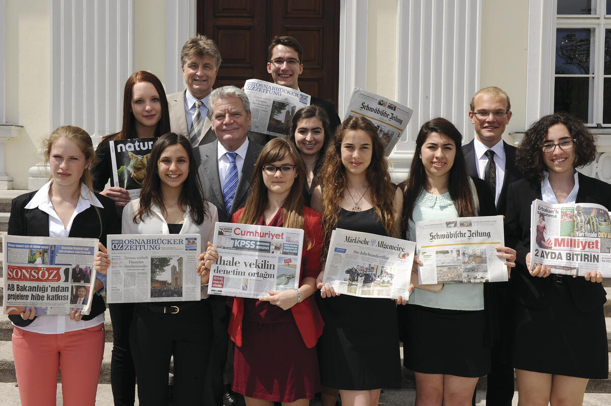 Osnabrück/Berlin. Sie haben sich gegenseitig besucht, Umweltprojekte recherchiert und für renommierte Tageszeitungen ihrer Heimatländer aufbereitet: deutsche und türkische Schülerinnen und Schüler, die in den vergangenen Monaten als „Nachwuchsjournalisten“ am Umweltbildungsprojekt „Umwelt Baut Brücken – Çevrecilikle Kurulan Köprüler“ der Deutschen Bundesstiftung Umwelt (DBU) teilgenommen haben. Zehn dieser jugendlichen „Brückenbauer“ wurden heute – zusammen mit Vertretern von Partnerzeitungen und der 20 deutschen und türkischen Schulen, die zukünftig am Projekt teilnehmen – im Schloss Bellevue in Berlin empfangen: Bundespräsident Joachim Gauck ist – ebenso wie der Staatspräsident der türkischen Republik, Abdullah Gül, – Schirmherr des deutsch-türkischen Projektes. Es wird von der DBU mit rund 1,5 Millionen Euro über insgesamt fünf Jahre (2011 bis 2016) gefördert.