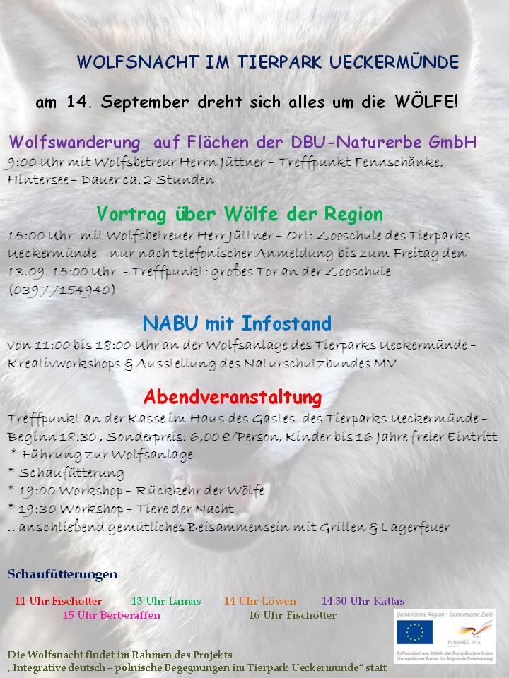 Flyer zur Wolfsnacht im Tierpark Ueckermünde