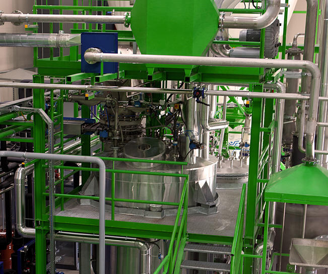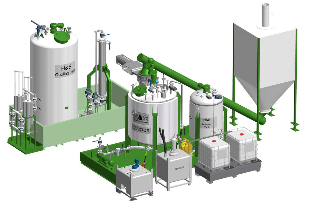 Wie Tests im Labor und in der Produktion belegen, lässt sich der Recycling-Schaum problemlos für einen erneuten Recyclingprozess verwenden. Überdies wurde überprüft, dass das Verfahren keine flüchtigen organischen Substanzen (VOC) freisetzt. Parallel zum chemischen Prozess konzipierte H & S auch die komplette Anlagentechnik und schuf u. a. Lösungen für die Lagerung und Förderung der PUR-Flocken, das Einbringen in den Recyclingreaktor, ein spezielles Rührwerk und das Abfiltern des Recycling-Polyols. Damit stehen erstmals alle Komponenten für ein qualitätserhaltendes chemisches Recycling von PUR-Weichschaum zur Verfügung.