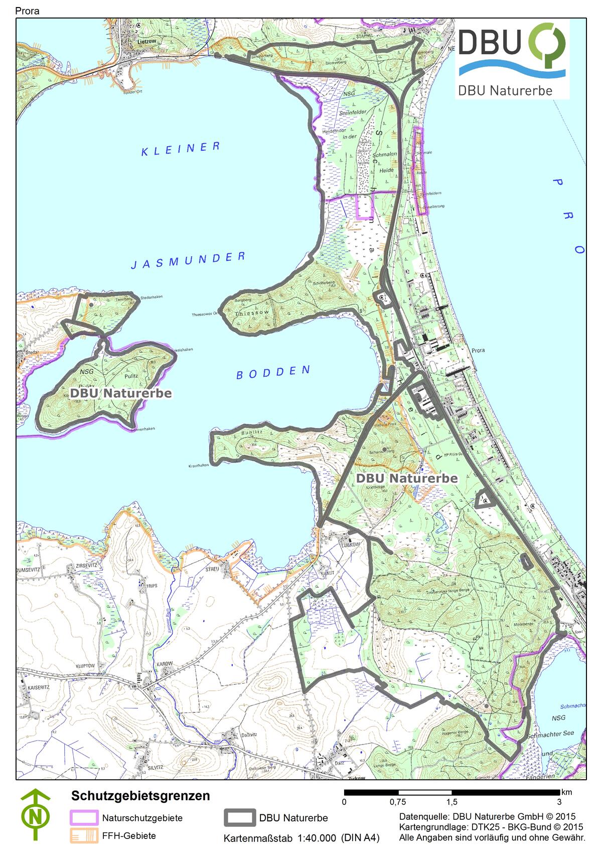 Die DBU-Naturerbefläche Prora mit rund 1.900 Hektar ist eine von 47 Flächen der gemeinnützigen Osnabrücker Gesellschaft. Auf den insgesamt 60.000 Hektar in neun Bundesländern will die Stiftungstochter als Treuhänderin offene Lebensräume mit seltenen und gefährdeten Arten durch Pflege bewahren, naturnahe Wälder ohne menschlichen Eingriff zu neuer Wildnis entwickeln, artenarme Forste in naturnahe Wälder überführen und Feuchtbiotope ökologisch aufwerten und erhalten.
