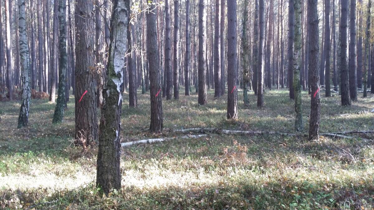 Die Rüthnicker Heide liegt im Löwenbergerland, südlich von Grieben und östlich von Rüthnick, eine Stunde nördlich von Berlin. Bis Ende Januar werden die Waldarbeiter des Bundesforstbetriebes Westbrandenburg, die das Projekt der DBU-Tochter auf der Fläche unterstützen, mit dem Holzeinschlag beschäftigt sein. In einer Versuchsvariante sollen kleinflächige Sturmschäden nachgeahmt werden, indem zwei Drittel der markierten Kiefern nur umgeworfen und als Totholz liegen gelassen werden. „Die Waldarbeiter müssen dabei mit den großen Erntemaschinen Fingerspitzengefühl beweisen“, weiß die Projektkoordinatorin des Forschungsprojektes „Wildnis Naturerbe“ (WiNat), PD Dr. Heike Culmsee von der DBU-Tochter. Auf anderen Testflächen werden im kommenden Herbst in die geschaffenen Lücken insgesamt rund 10.000 junge Eichen, Buchen und Linden gepflanzt. In einer dritten Variante soll sich der Wald nach der Holzentnahme ohne weitere Einflussnahme zu einem Laubmischwald entwickeln. Weitere 18 Hektar dienen als Kontrollfläche, die ohne forstliche Maßnahmen sich selbst überlassen werden. Im Frühjahr umzäunen die Waldarbeiter Teile der Versuchsflächen, um größere Wildtiere außen vor zu lassen. „Wir wollen wissen, inwiefern Wildverbiss die Entwicklung beeinflusst“, erläutert Culmsee.