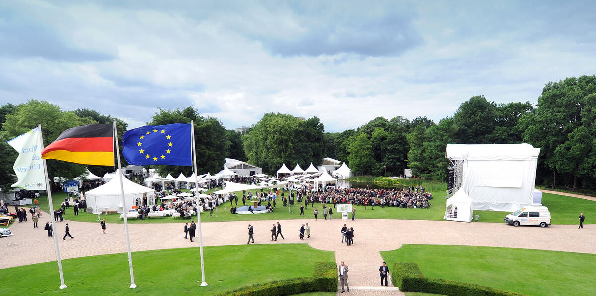 Berlin. Vom 7. bis 8. Juni findet im Park von Schloss Bellevue die fünfte „Woche der Umwelt“ statt. Zum ersten Mal öffnet die große Umwelt-Schau am zweiten Veranstaltungstag ab 13 Uhr ihre Tore für alle Interessierten zu einem „Publikumsnachmittag“. Im Schlosspark erwartet die Besucher die rund 4.000 Quadratmeter große Ausstellung, auf der sich annähernd 200 Aussteller zu den Fachthemen Klimaschutz, Energie, Ressourcen, Boden und Biodiversität, Mobilität und Verkehr, Bauen und Wohnen präsentieren. Parallel dazu wird es Diskussionsrunden auf den Haupt- und Nebenbühnen geben sowie Vorträge in den verschiedenen wissenschaftlichen Fachforen. Für den Einlass ist ein gültiger Personalausweis oder Reisepass erforderlich.