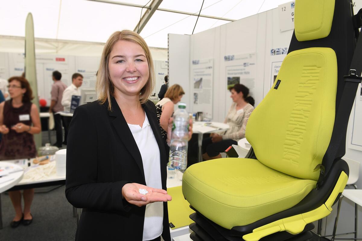 Berlin. Alexandra Hesse steht am Stand des Gesamtverbandes der deutschen Textil- und Modeindustrie bei der „Woche der Umwelt“ vor einem mit grünem Stoff bezogenen Autositz der AUNDE Group. Das Besondere: Das Garn ist kein gewöhnliches Polyester, sondern hergestellt aus recycelten PET-Plastikflaschen. „Mein Eindruck von der Veranstaltung ist einfach super, die Exponate sind extrem spannend“, meint die Verbandsassistentin. Unter strahlend blauem Himmel versammelten sich zwei Tage lang knapp 200 ausgewählte Aussteller im Park von Schloss Bellevue. Bei der Umweltschau von Bundespräsident Joachim Gauck und der Deutschen Bundesstiftung Umwelt (DBU) zeigten sie knapp 12.000 Besuchern, wie lösungsorientierte Innovationen im Natur- und Umweltschutz entwickelt und Modellvorhaben praxisnah umgesetzt werden. Die Rückmeldungen der Aussteller zur Umweltschau spiegelten viele Facetten der Veranstaltung und reichten von „einfach beeindruckend“ über „lebendig“ bis hin zu „tolle Atmosphäre, fast wie auf einer riesigen Gartenparty“.