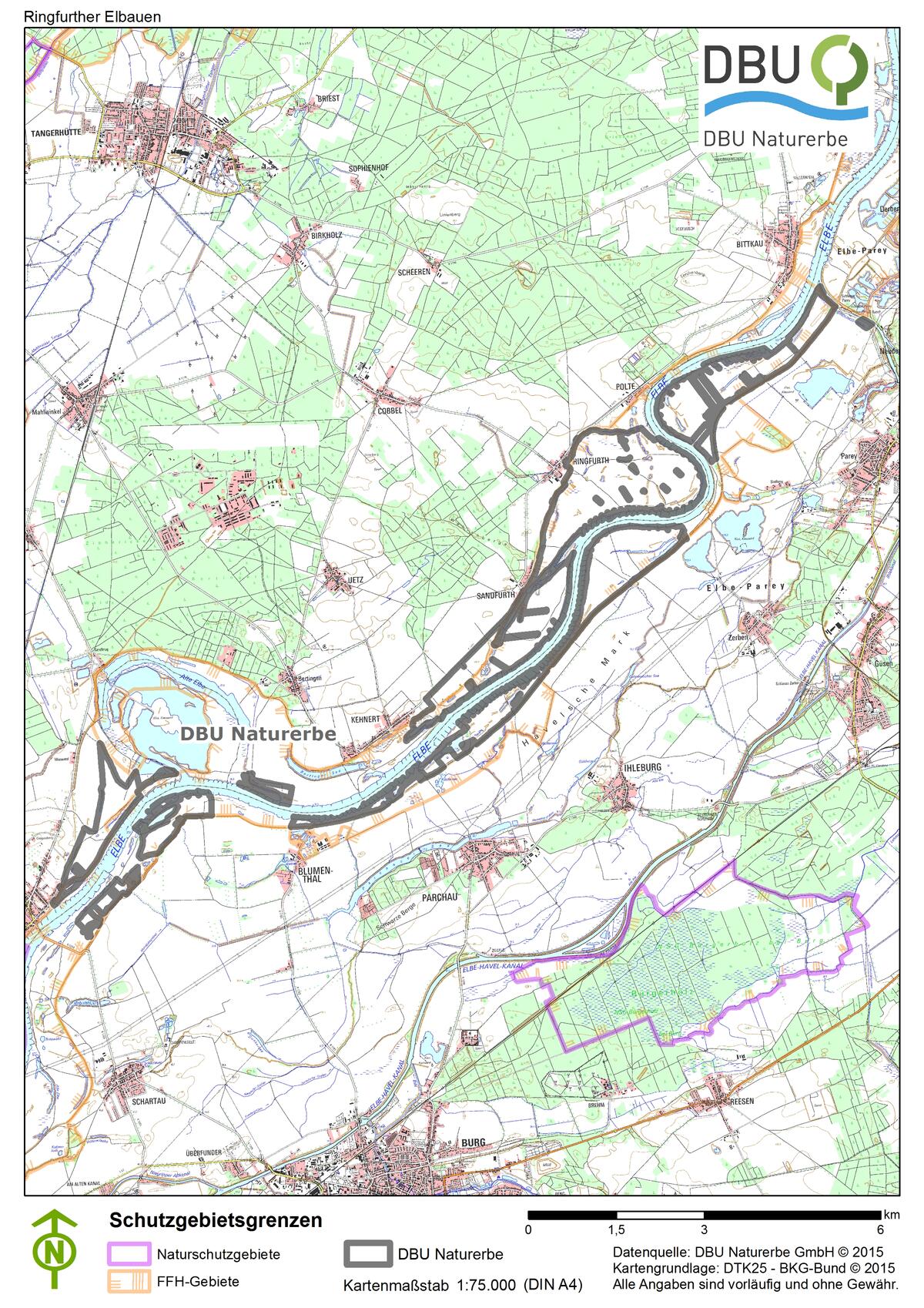 Karte zeigt Wege über die DBU-Naturerbefläche Ringfurther Elbauen
