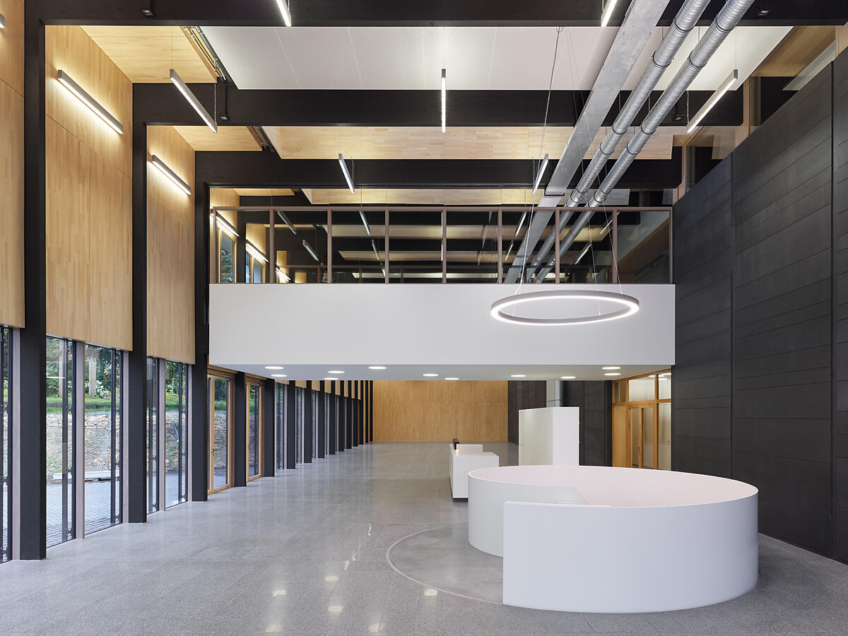 Architekt Huber: „Für uns ist der Preis eine wichtige Bestätigung unserer Arbeit, denn wir zeigen, dass nachhaltiges Bauen und eine ästhetische Gestaltung sehr gut vereinbar sind – und das sogar zu vernünftigen Preisen.“ Dittrich betonte, ein verantwortlicher Umgang mit den natürlichen Ressourcen der Erde sei „das Mega-Thema, für eine zukunftsfähige Entwicklung“. Das erst recht, wenn es um die weltweite Bautätigkeit gehe. Die Frage sei, wie es zum Beispiel tragfähig gelingen könne, die Menschheit mit bezahlbarem Wohnraum zu versorgen. Experten wiesen darauf hin, dass in den kommenden Jahren weltweit mehr als eine Milliarde Häuser gebaut werden müssten, wenn die Not der von Armut, Migration, Umweltverschmutzung oder Krieg bedrohten Menschen gelindert werden solle. Dittrich: „ Wir sind überzeugt: Es wird nicht ohne massiven Einsatz nachwachsender Rohstoffe gehen. Denn Ressourceneffizienz bedeutet unter anderem auch, nachwachsende Rohstoffe möglichst umfassend zu nutzen. Holz spielt dabei eine zentrale Rolle.“ Wegen seiner statischen und bauphysikalischen Eigenschaften weise es ein besonders breites Anwendungsspektrum auf, auch in der Primärkonstruktion eines Gebäudes.