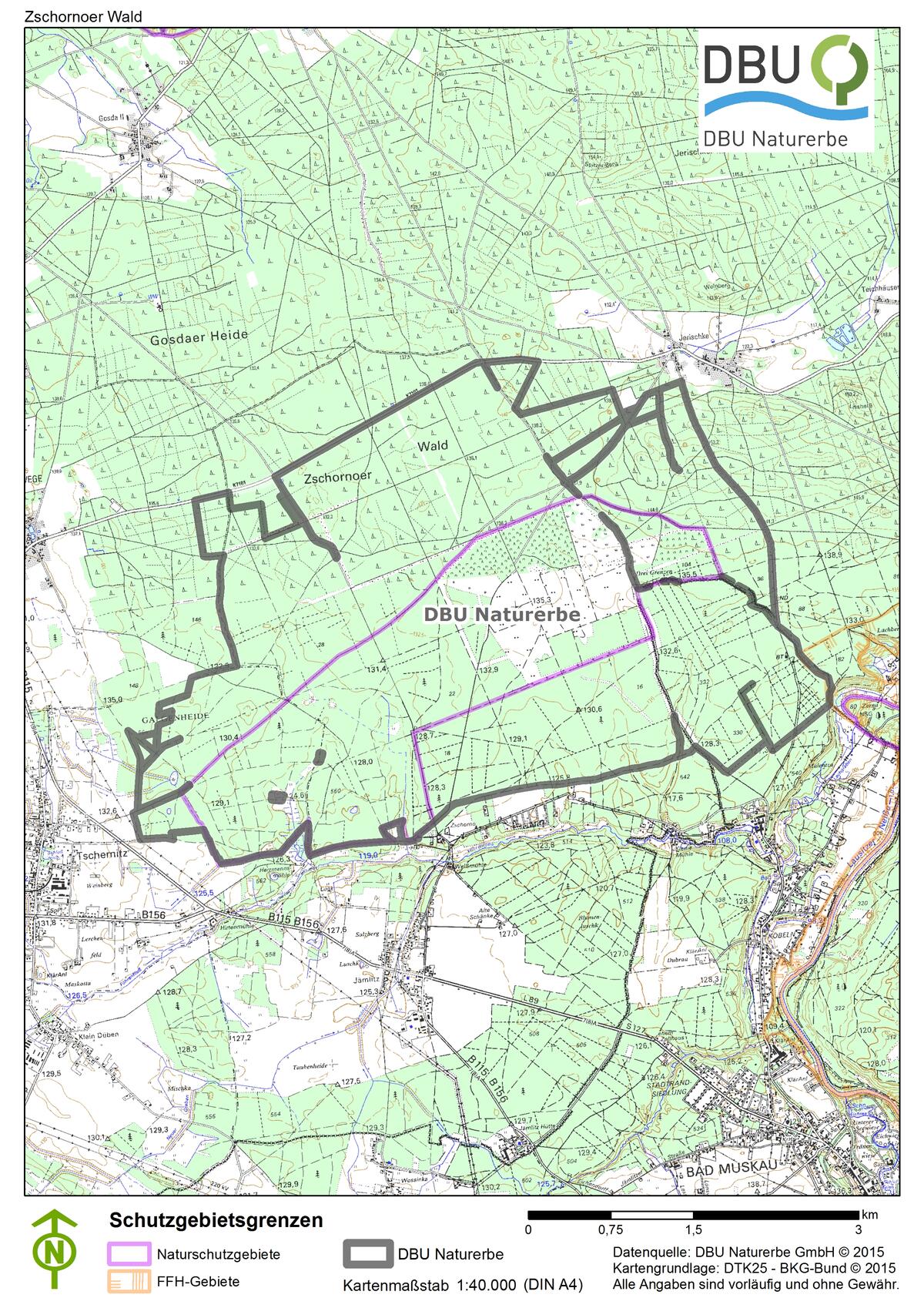 Karte zeigt Wege durch die DBU-Naturerbefläche Zschorner Wald