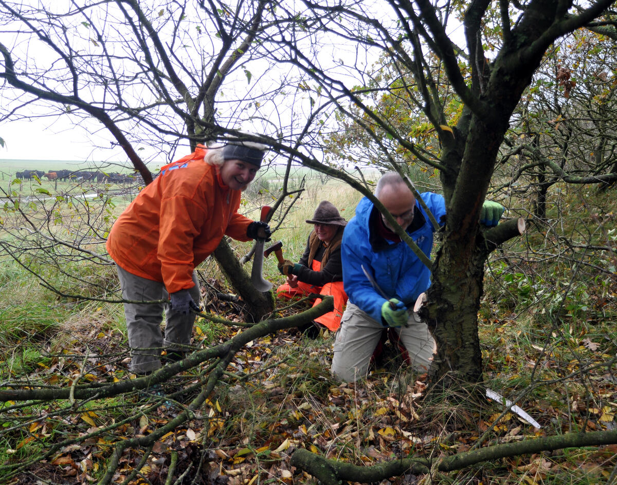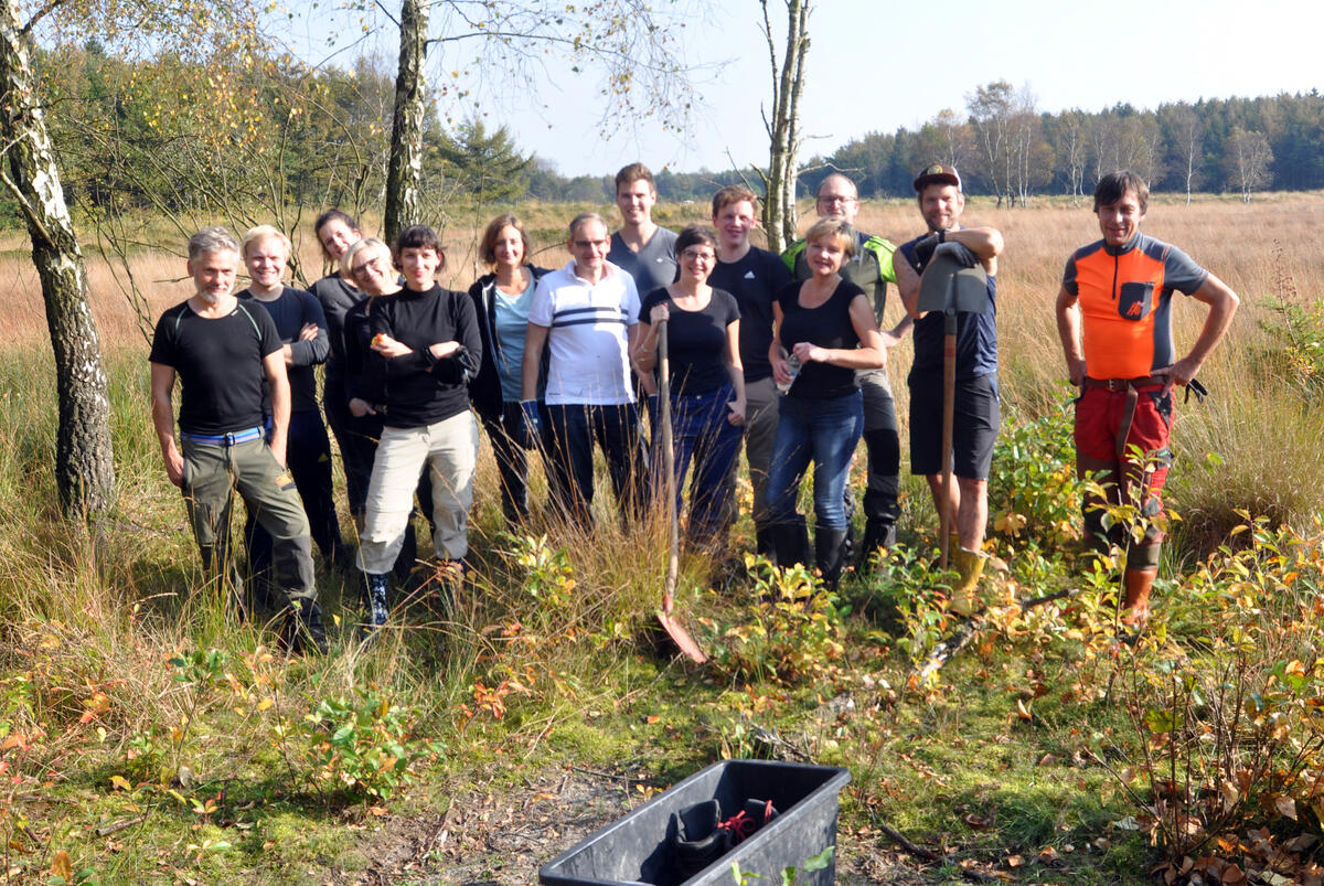 Cuxhaven. Über 40 freiwillige Helfer aus ganz Deutschland nutzen ihre Freizeit, um sich im praktischen Naturschutz zu engagieren: Vom 22.10. bis zum 4.11.2017 ist der Verein Bergwaldprojekt zum vierten Mal zu Gast auf der DBU-Naturerbefläche Cuxhavener Küstenheide in der Nähe von Cuxhaven. Zwei Wochen lang leisten die Teilnehmer einen persönlichen Beitrag, um dort beispielsweise Heideflächen von Gehölzaufwuchs zu befreien und Heidemoore durch Wiedervernässung in ihrer Entwicklung zu fördern. Die rund 1450 Hektar große, ehemals militärisch genutzte Fläche gehört zum Nationalen Naturerbe und ist 2009 vom Bund an die gemeinnützige Tochter der Deutschen Bundesstiftung Umwelt (DBU), die DBU Naturerbe GmbH, übertragen worden.