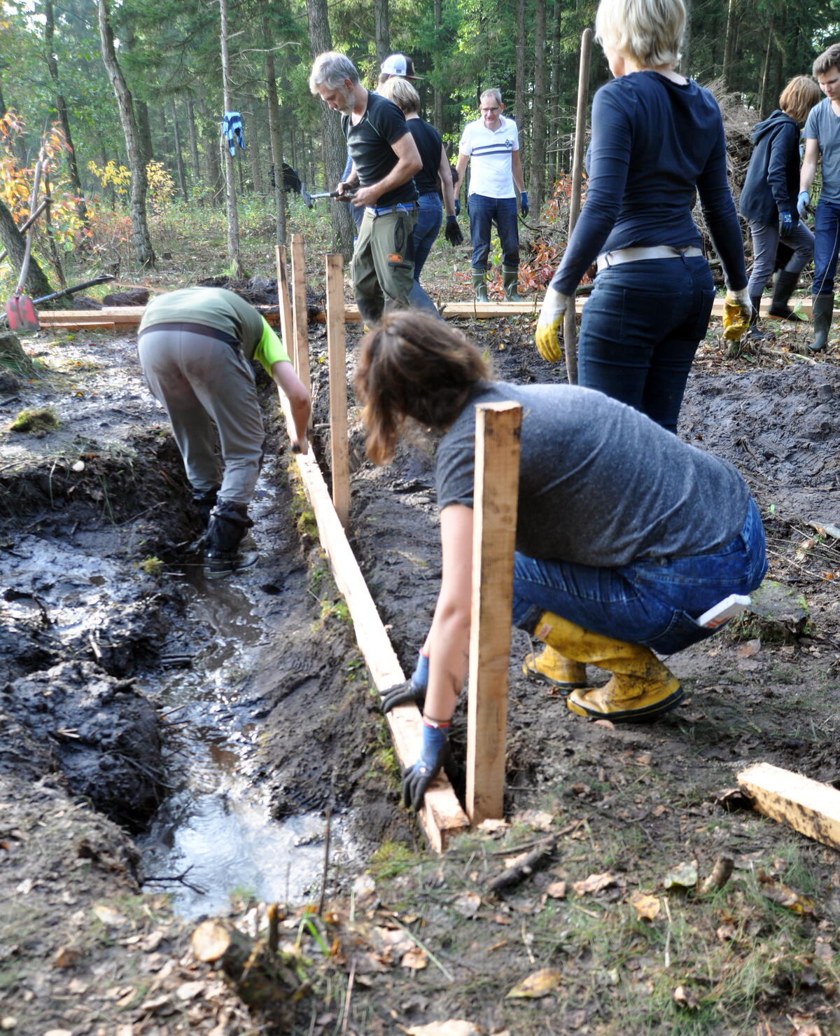 „Durch die jahrzehntelange militärische Nutzung sind hier wertvolle Lebensräume bewahrt worden und haben sich zum Teil weiterentwickelt. Wir freuen uns, dass uns die Teilnehmer des Bergwaldprojektes einmal im Jahr helfen, diesen wertvollen Naturraum zu schützen“, sagt Revierleiter Henning Wehebrink vom Bundesforstbetrieb Niedersachsen. Dieses Mal stehen Heideflächen auf Binnendünen, das Arenscher Geestkliff und ein Moorgewässer im Wisentgehege im Fokus: Die Teilnehmer aus ganz Deutschland entfernen Aufwüchse von Spätblühender Traubenkirsche und Sitka-Fichte aus Heideflächen und angrenzenden Waldrändern, um diese besonders schützenswerten Biotopstrukturen zu bewahren. Im Bereich des Wisentgeheges wird eine alte Entwässerungsstruktur verbaut, um dort den Wasserspiegel auch in den Sommermonaten konstant halten zu können, wodurch selten gewordene Moor- und Sumpfarten wie beispielweise Fieberklee, Königs-Farn und Rosmarinheide in ihrer Entwicklung gefördert werden sollen. „Die Bergwaldprojektteilnehmer leisten hier harte Arbeit“, stellt Wehebrink fest. Arbeit, die sich lohnt: So bleiben die Lebensräume vieler, mittlerweile selten gewordener und zum Teil vom Aussterben bedrohter, Tiere und Pflanzen der Heiden und Moore erhalten.