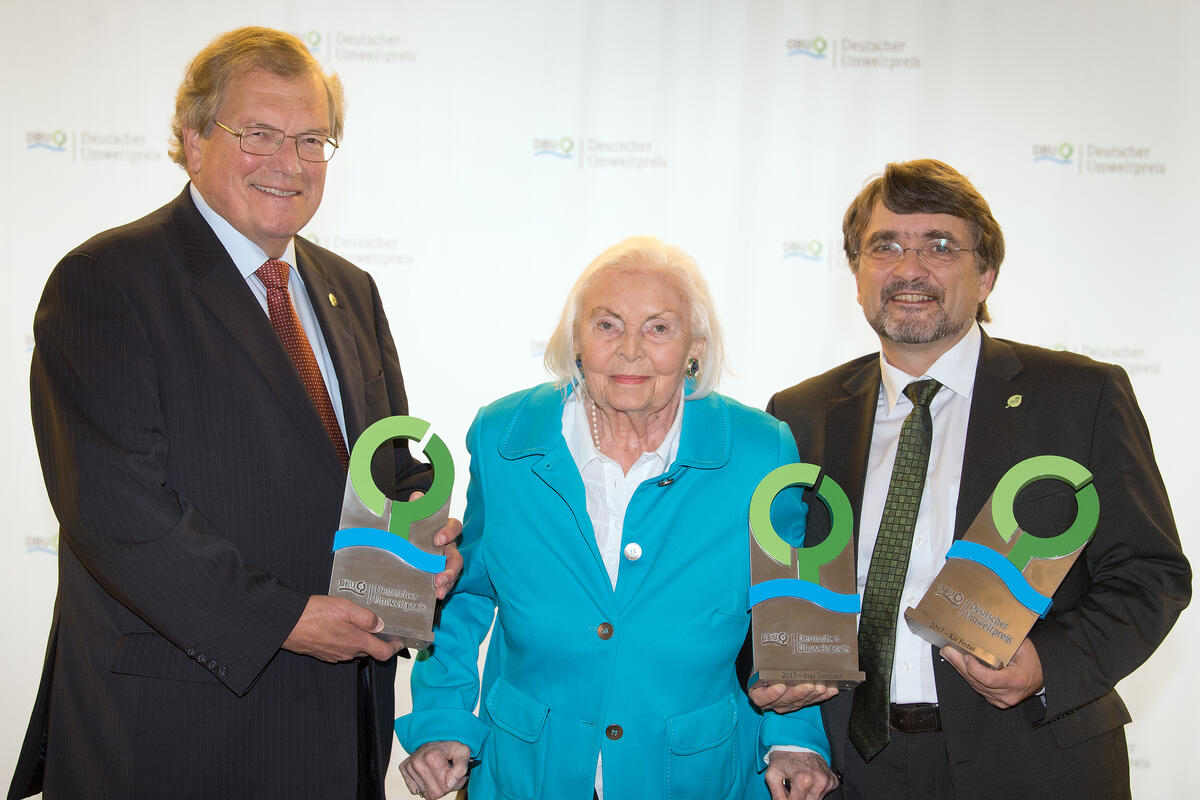 As trailblazers of the “Green Belt”, the first and largest pan-German nature conservation project, the DBU honored Inge Sielmann, Honorary Chairperson of the Heinz Sielmann Foundation; Dr. Kai Frobel, Coordinator of the nationally and internationally active Projektbüro Grünes Band (“Green Belt Project Agency”) of the German Association for Environment and Conservation (Bund für Umwelt und Naturschutz Deutschland, BUND); and Prof. Dr. Hubert Weiger, Chairperson of BUND. Only through the love of committed friends of nature, for which this trio stands, has it been possible to preserve the approximately 1,400-kilometer-long former border between West and East Germany for the plant and animal world, which had found a haven within the former “Death Strip”, it was stated. Through the work of Sielmann, Frobel and Weiger, a vision was brought to life in Germany of a European initiative for the Green Belt, and a symbol was created for the surmounting of the Cold War.