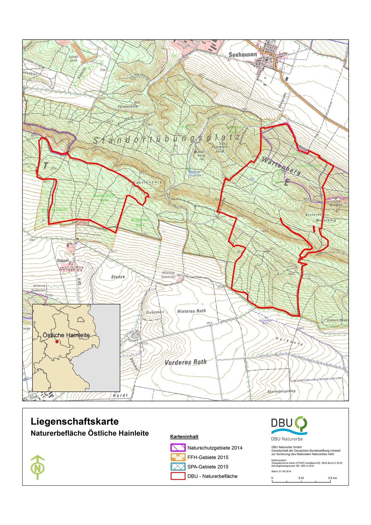 Karte zeigt Weg durch die DBU-Naturerbefläche Östliche Hainleite